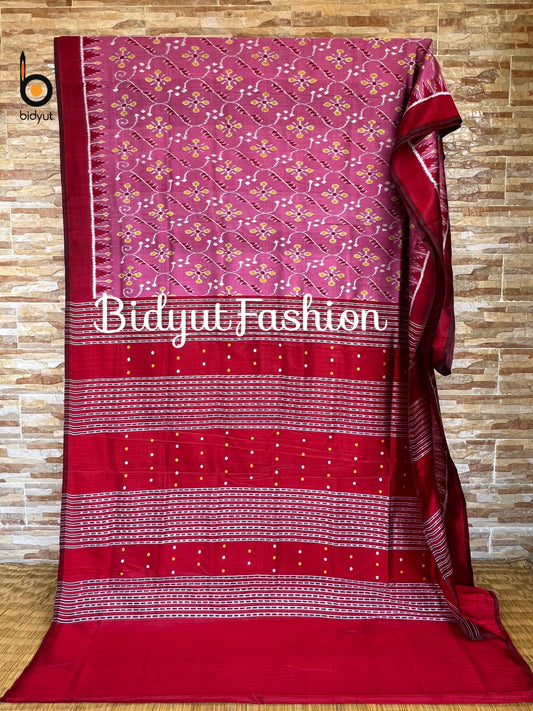 Handlooms of Odisha Jagatsinghpur Suta Ikat Cotton saree Pink color