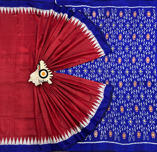 Handlooms of Odisha Nuapatna Ikat Silk Saree Red Color