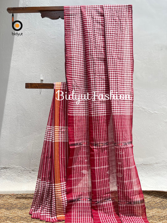 Handlooms of Odisha Jagatsinghpur Suta Ikat Cotton Saree Maroon color