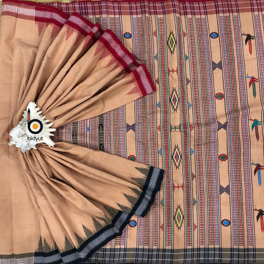 Handlooms of Odisha Ganjam Bomkai Cotton Saree Beige color