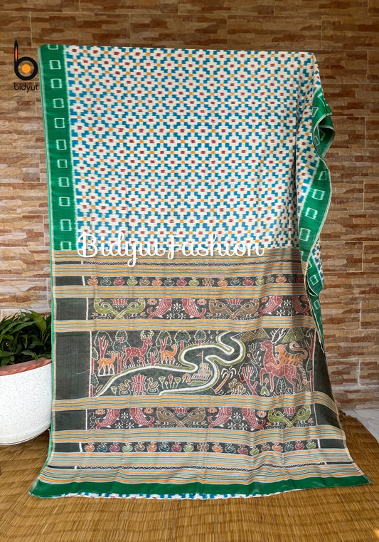 Handlooms of Odisha Nuapatna Ikat Silk Saree Green Color