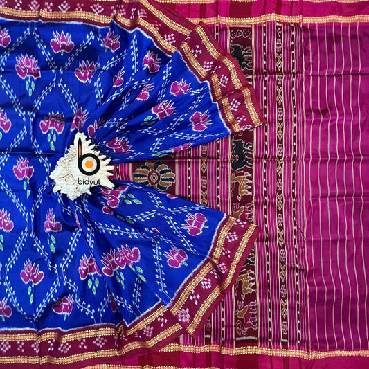 Handlooms of Odisha Nuapatna Ikat Silk Saree Blue color