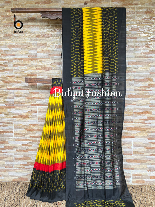 Handlooms of Odisha Sambalpuri Ikat Silk Saree Yellow color