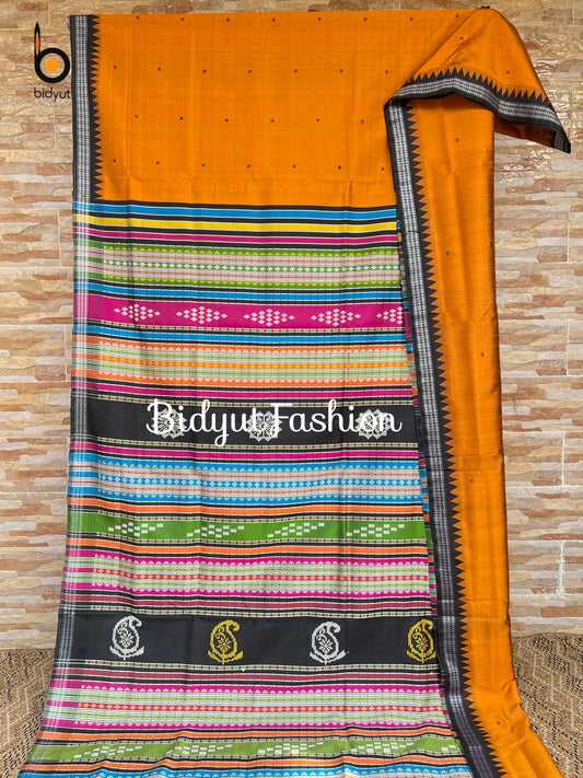 Handlooms of Odisha Berhampuri Double Palla Silk Saree Mustard yellow color