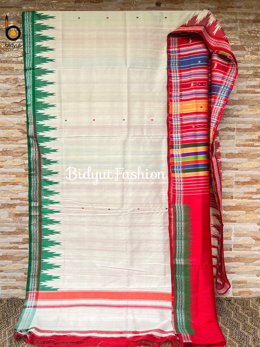 Handlooms of Odisha Berhampuri Double Palla Ganga Jamuna border Silk Saree white color