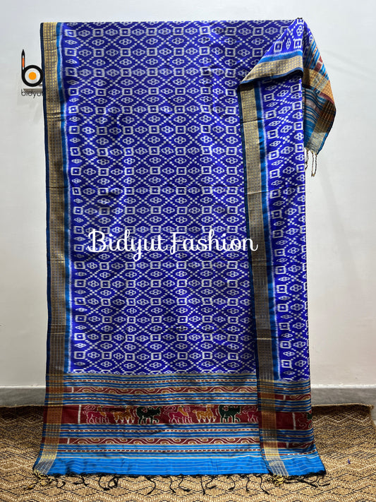 Handlooms of Odisha Nuapatna Ikat Silk Saree Blue color