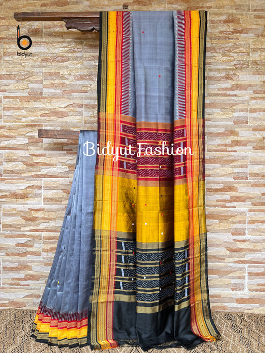 Handlooms of Odisha Nuapatna Ikat Silk Saree Grey color