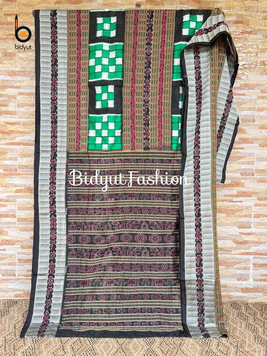 Handlooms of Odisha Sambalpuri Double Ikat Passapalli Cotton Saree Green color