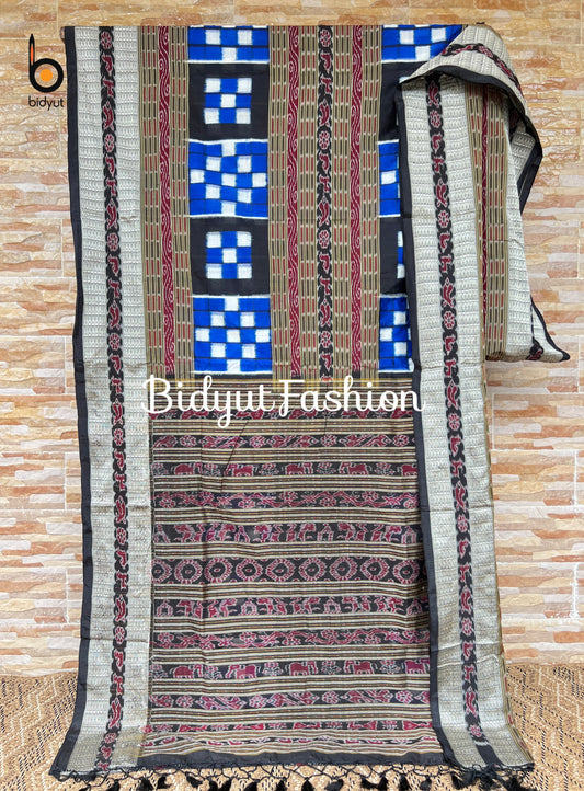 Handlooms of Odisha Sambalpuri Double Ikat Bichitrapuri Silk Saree Blue color