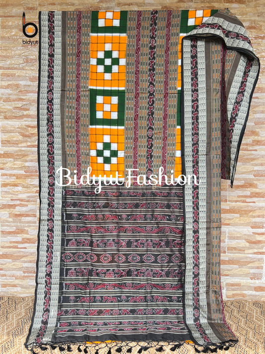 Handlooms of Odisha Sambalpuri Double Ikat Utkal Laxmi Silk Saree multicolor green