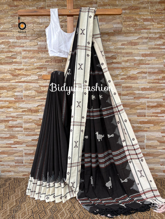 Handloom of Odisha Kotpad Tribal Cotton Saree in Black color