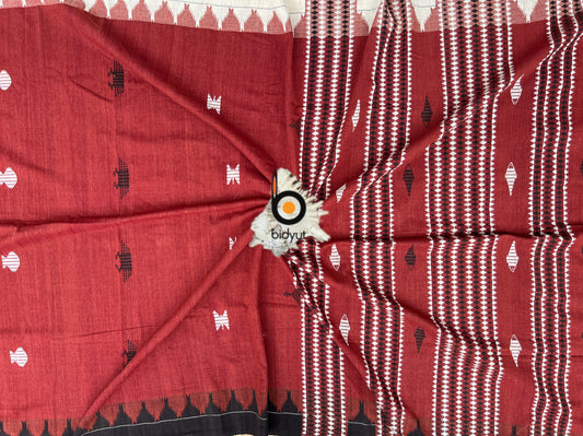 Handloom of Odisha Kotpad Tribal Cotton Saree in red color