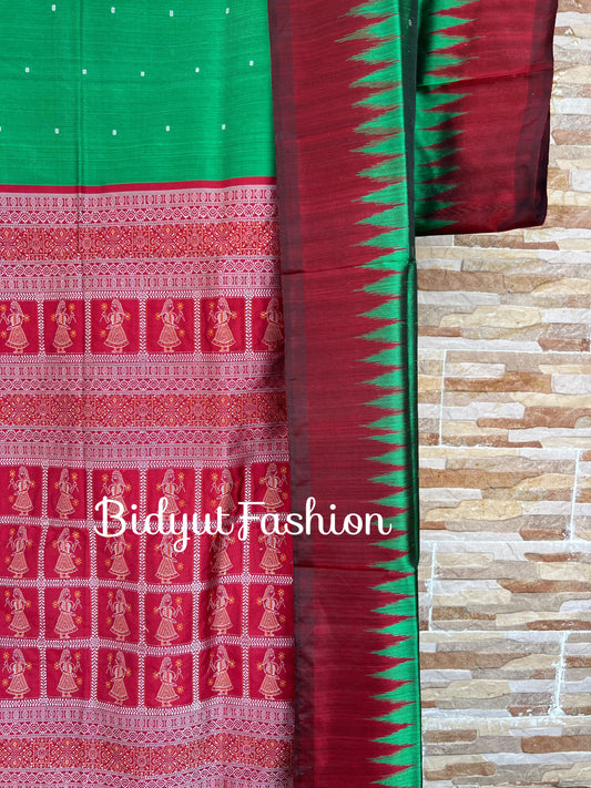 Odisha handloom Nuapatna Khandua Ikat Silk Saree Green Color