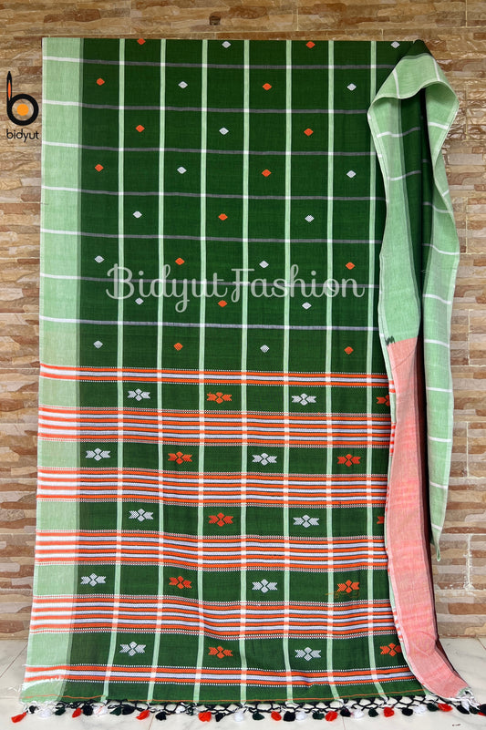 Handlooms of Odisha Santhal Tribal Cotton Sarees green color