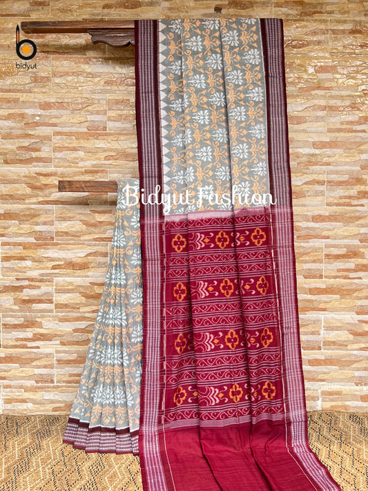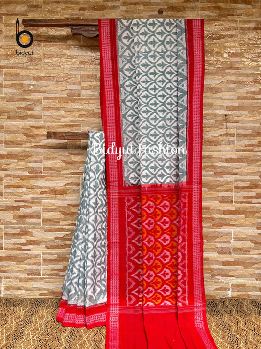 Handlooms of Odisha Sambalpuri Ikat Cotton Saree Grey Color