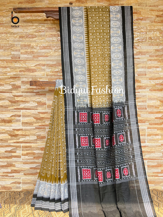Handlooms of Odisha Sambalpuri Ikat Cotton Saree Olive Green Color