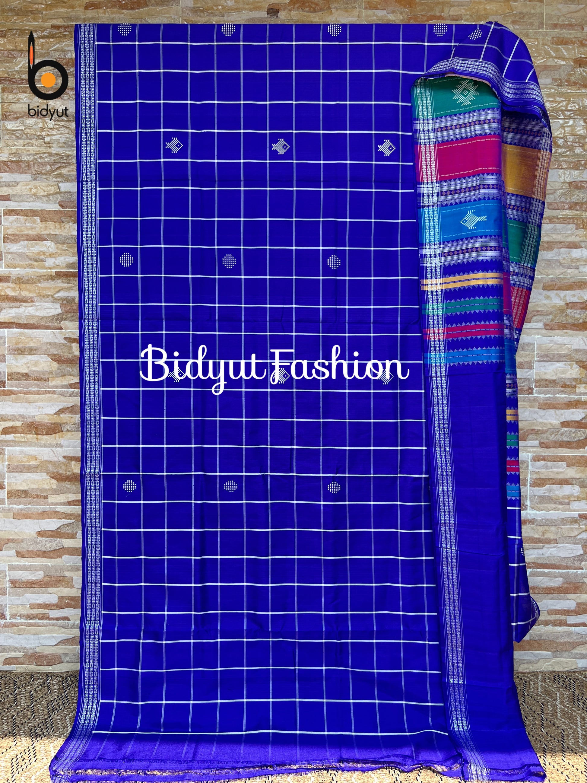 Experience the sheer elegance and timeless beauty of a double palla blue color Berhampuri Silk Saree with body check, a masterpiece originating from the silk city of India, Berhampur in Odisha. Renowned for its exquisite craftsmanship and rich heritage, this saree showcases the intricate Phoda Kumbha weaving technique, making it a true treasure of Odisha handloom using pitloom technique.