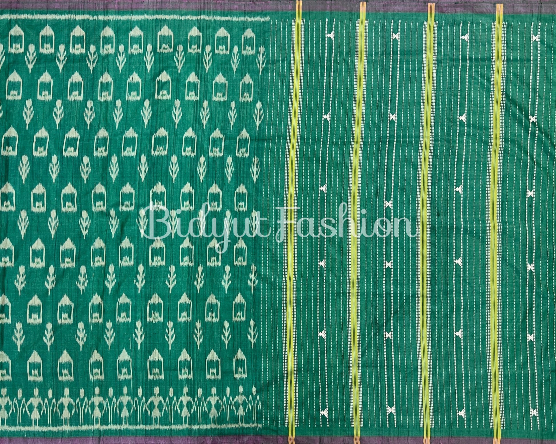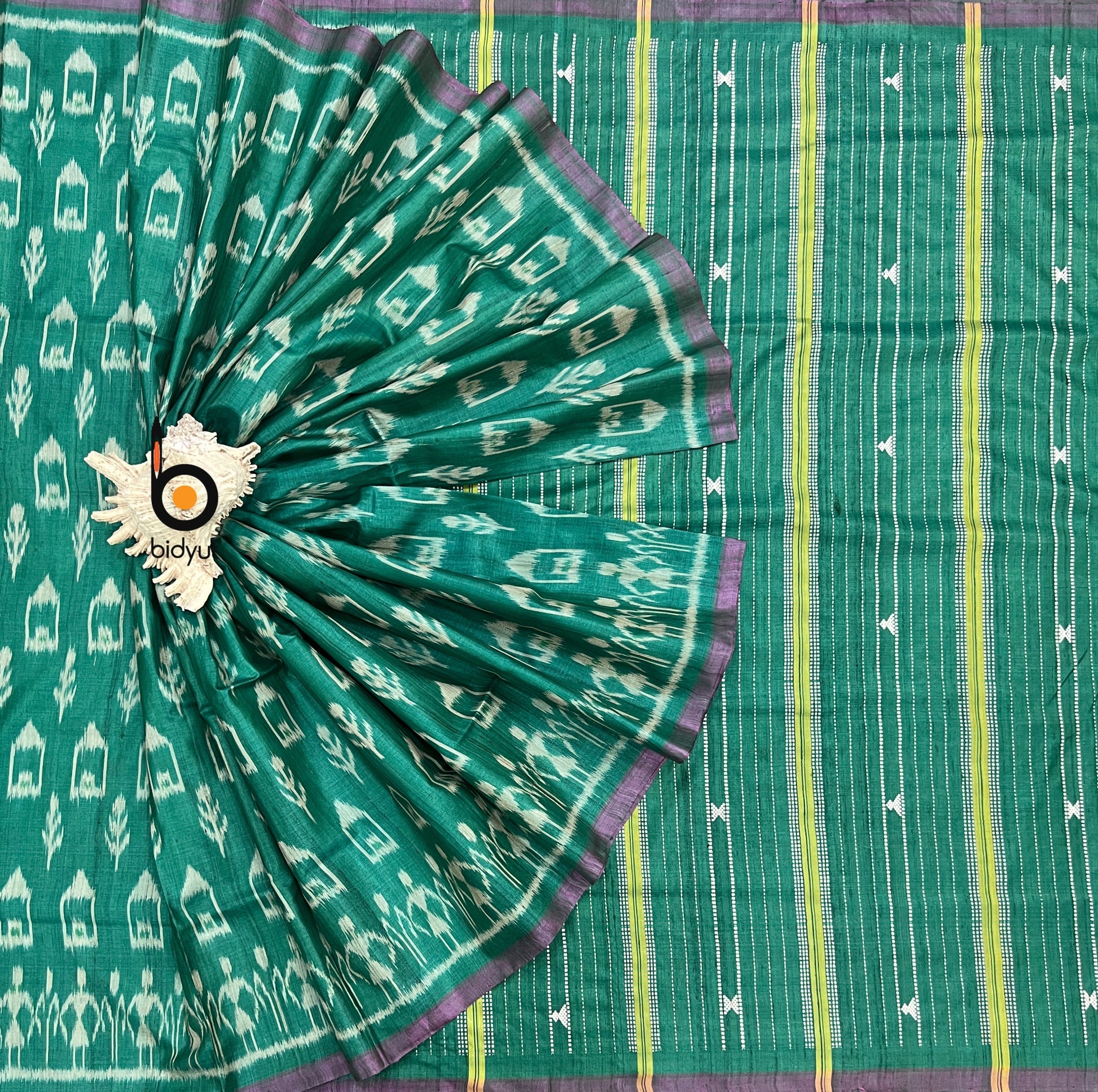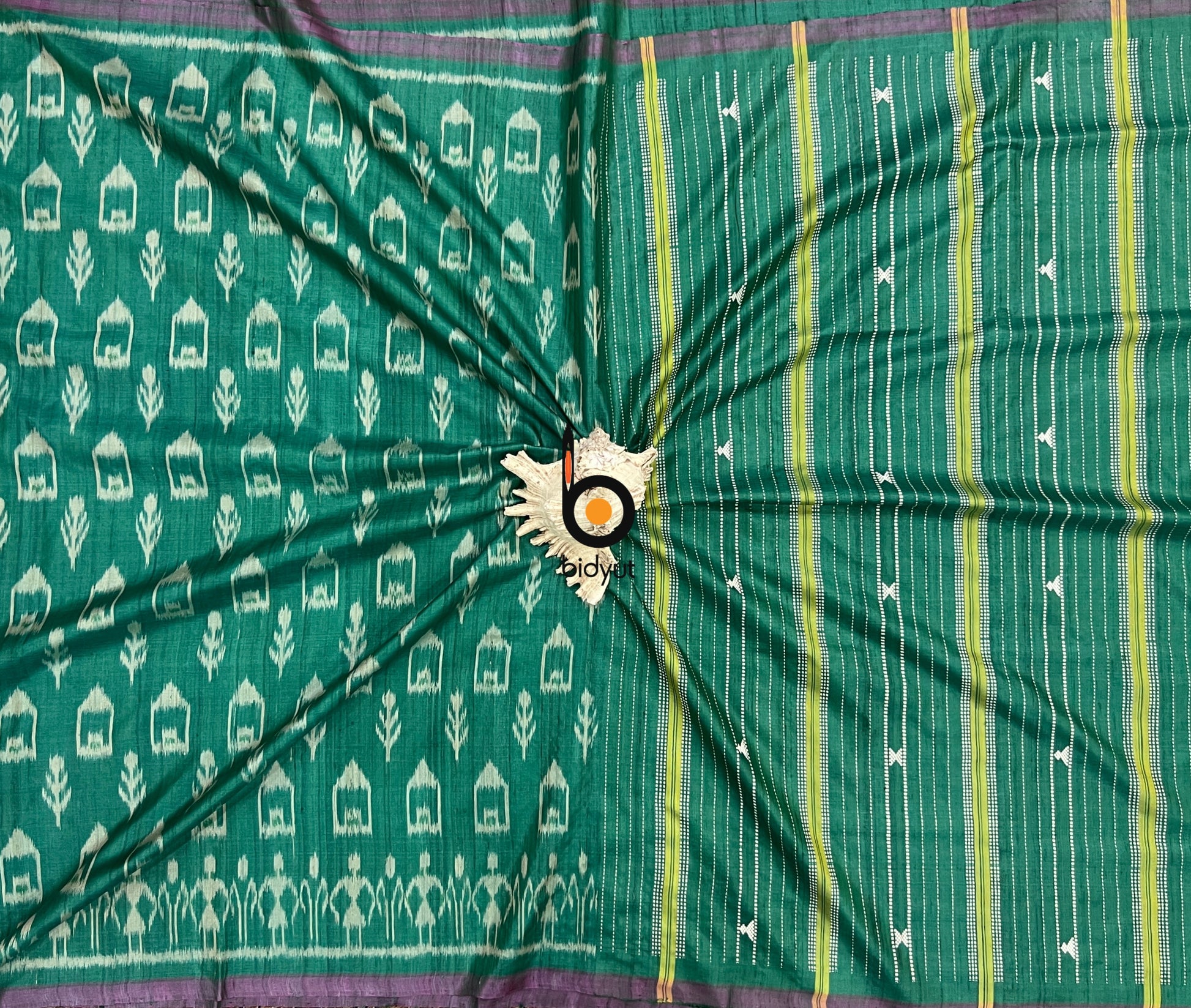 Handlooms of Odisha Gopalpur Ikat Tussar Silk Saree Green Color