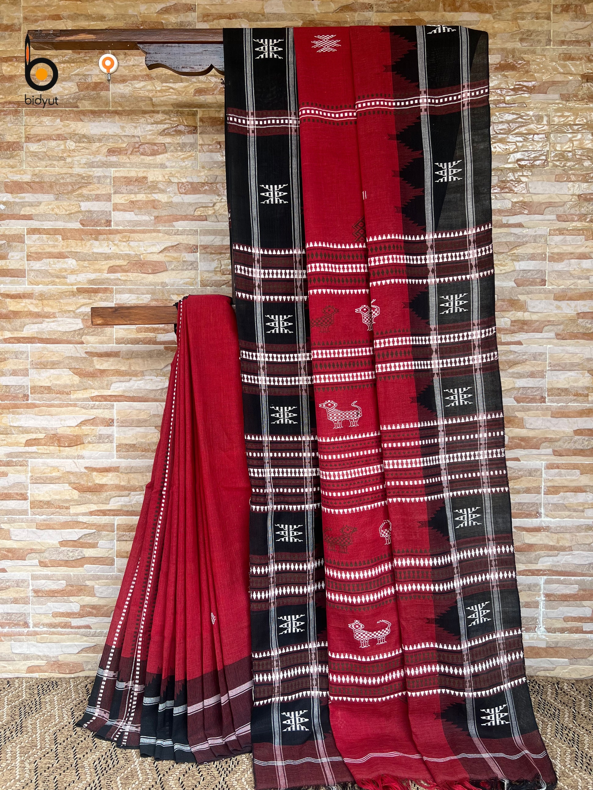 Handloom of Odisha Kotpad Tribal Cotton Saree in red color