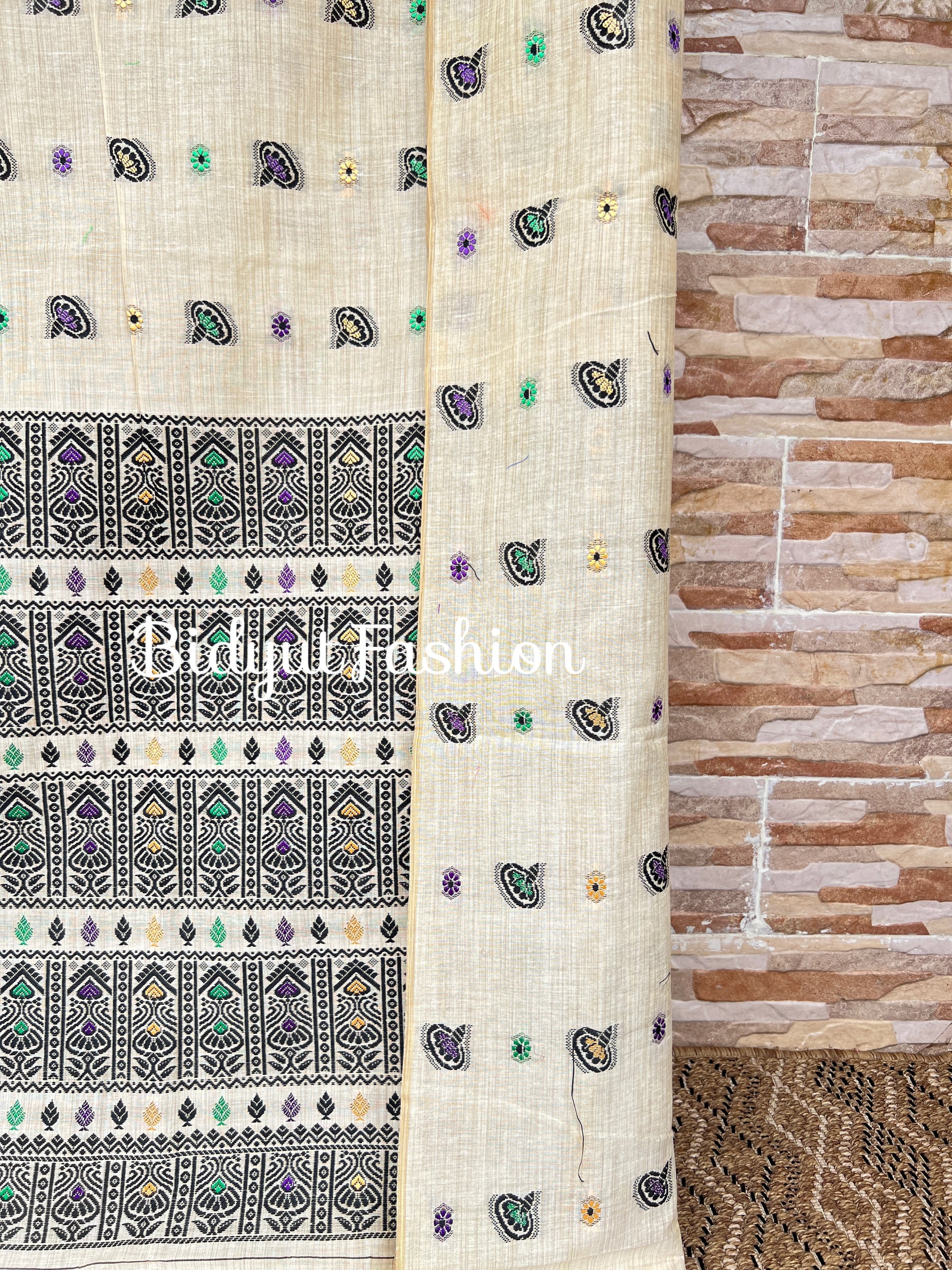 Handlooms of Assam Cotton Saree Beige color