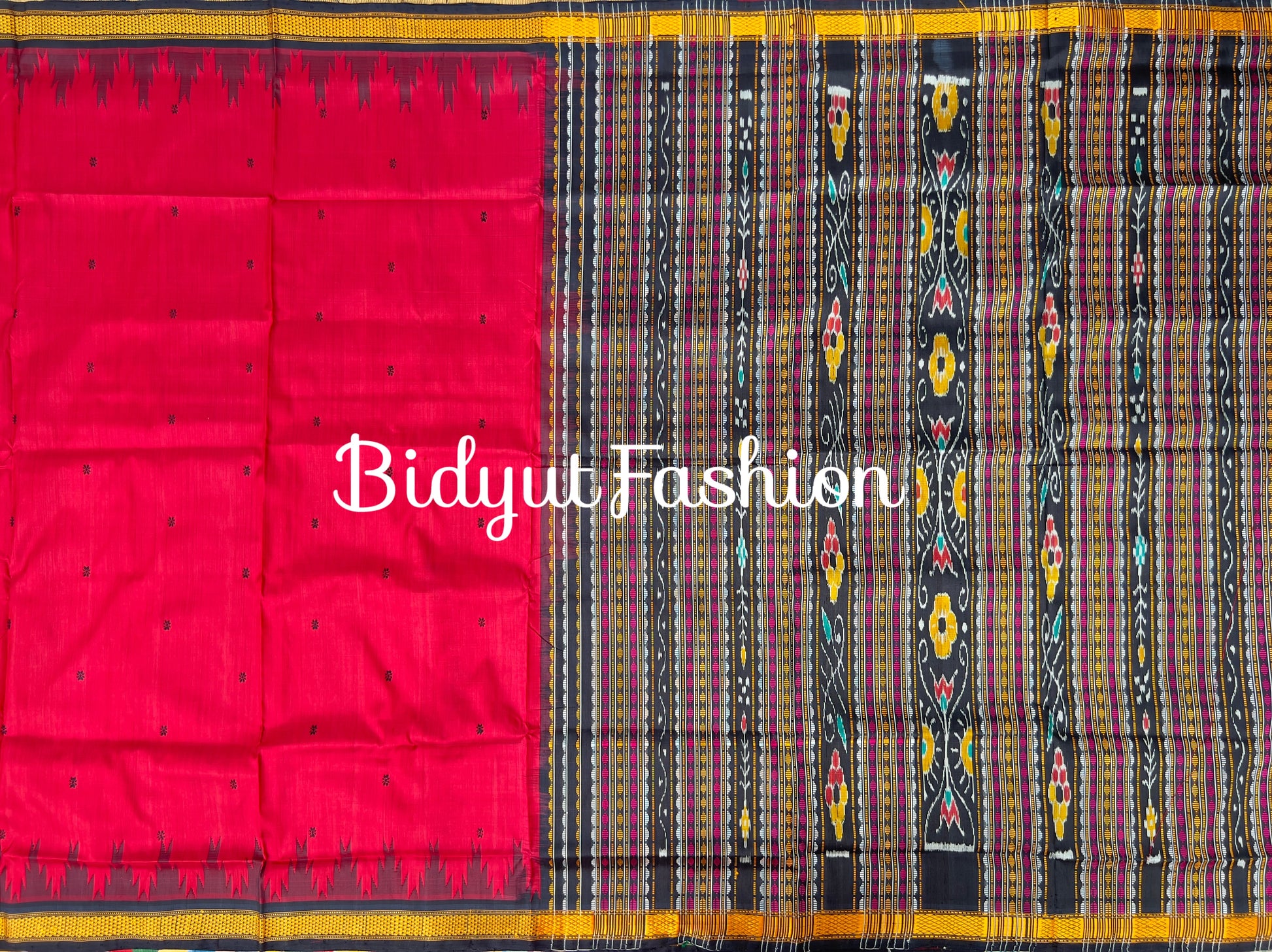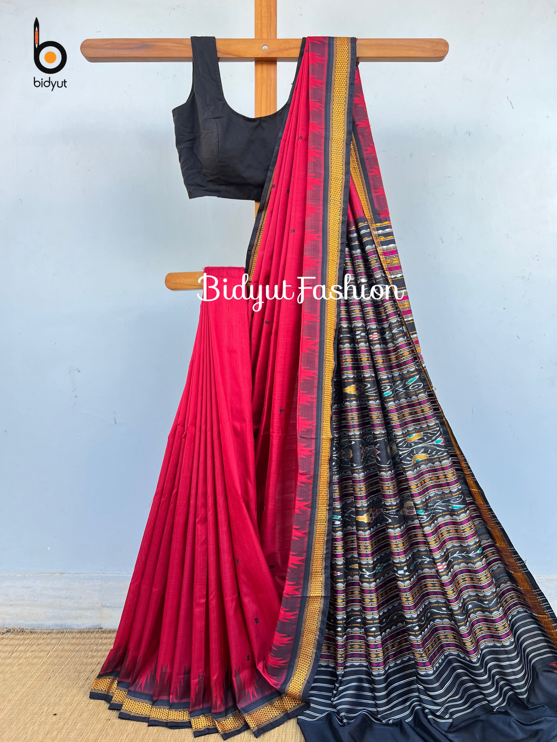 Experience the sheer elegance and timeless beauty of the Berhampuri red color double palla Silk Saree - a masterpiece originating from the silk city of Berhampur, also known as "Silk City," in Odisha. Renowned for its exquisite craftsmanship and rich heritage, this saree showcases the intricate Phoda Kumbha weaving technique, making it a true treasure of Odisha handloom.