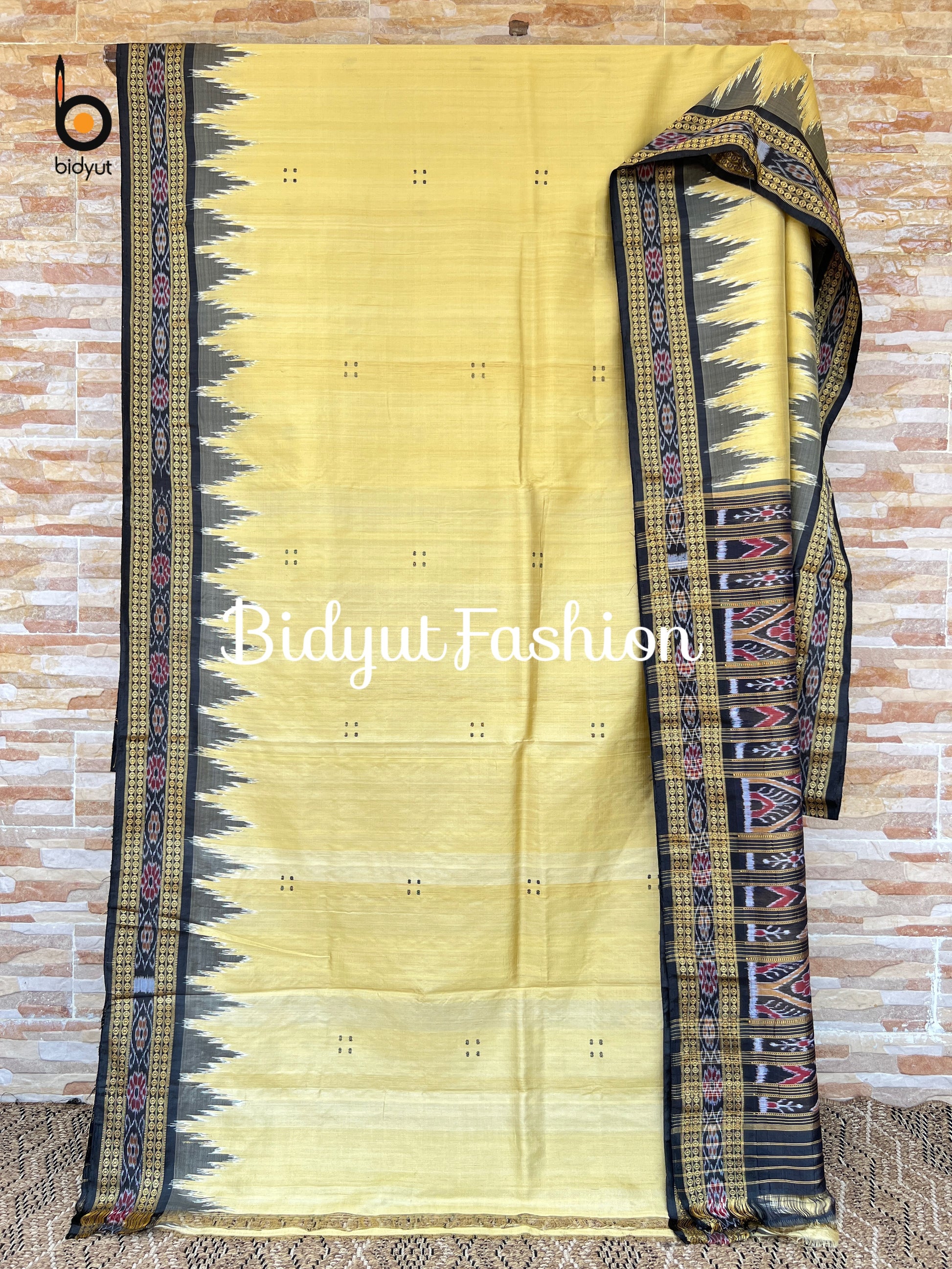 Handlooms of Odisha Nuapatna Khandua Ikat Silk Saree Yellow Color