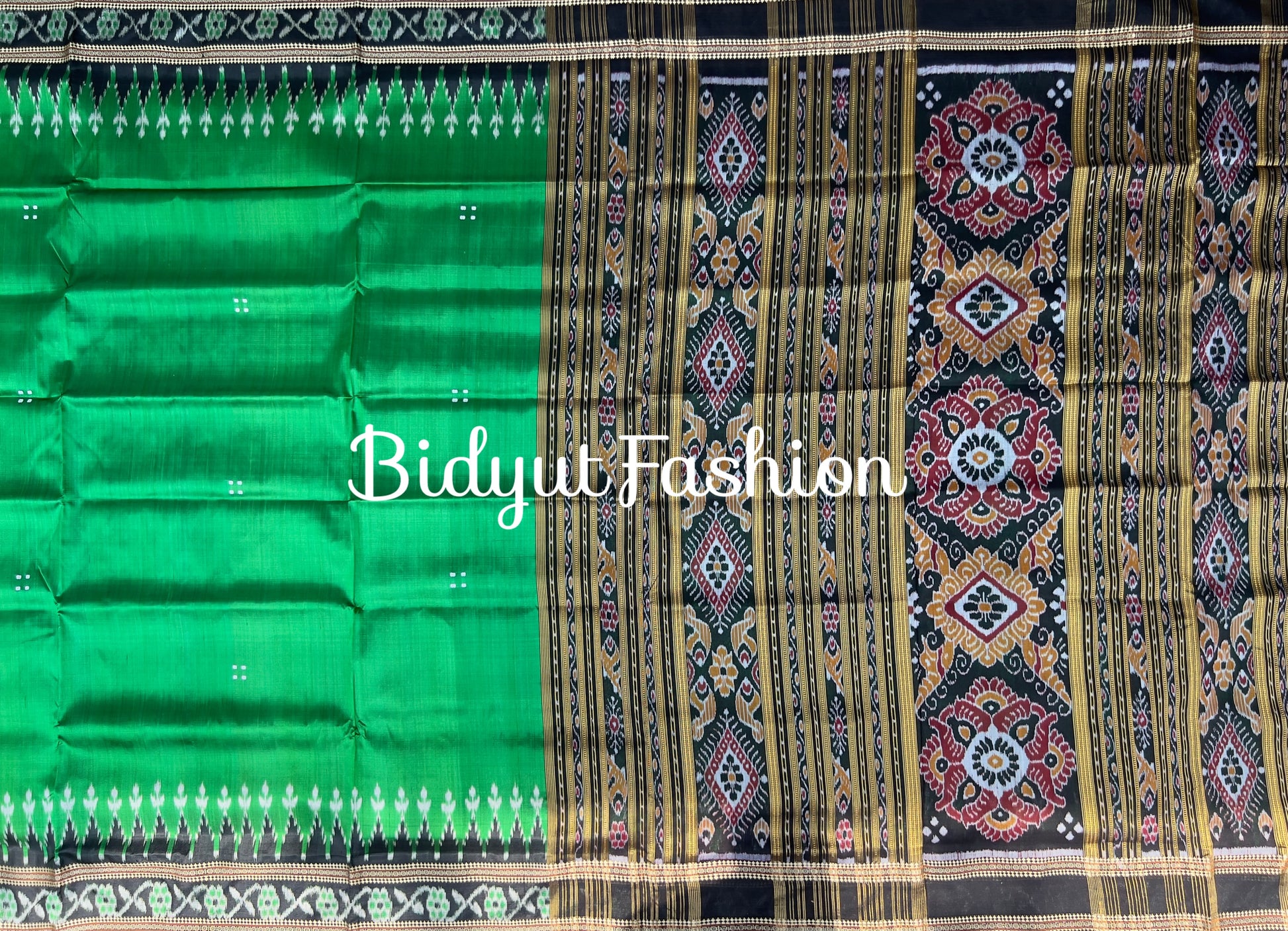 Handlooms of Odisha Nuapatna Khandua Ikat Silk Saree Green color