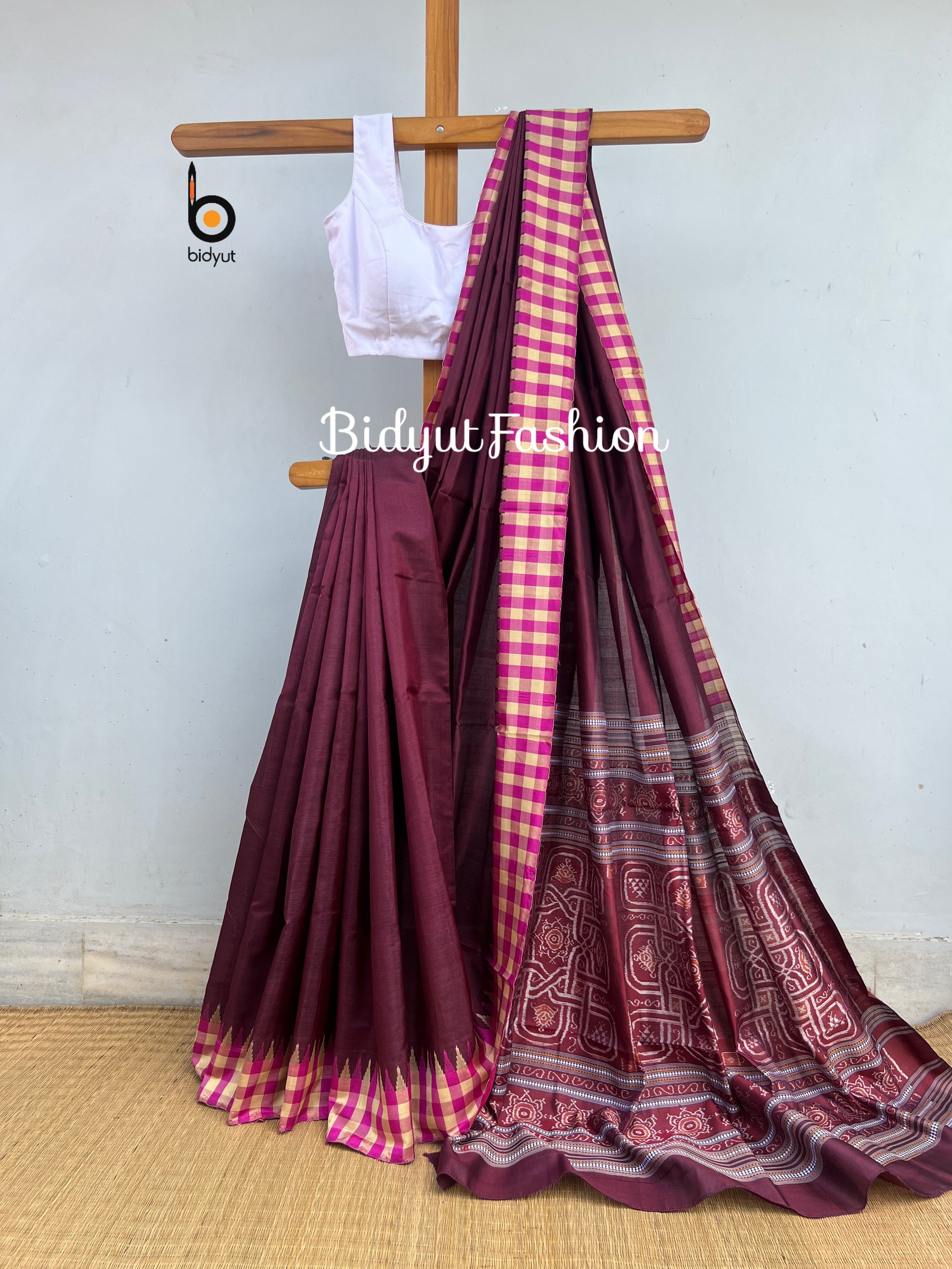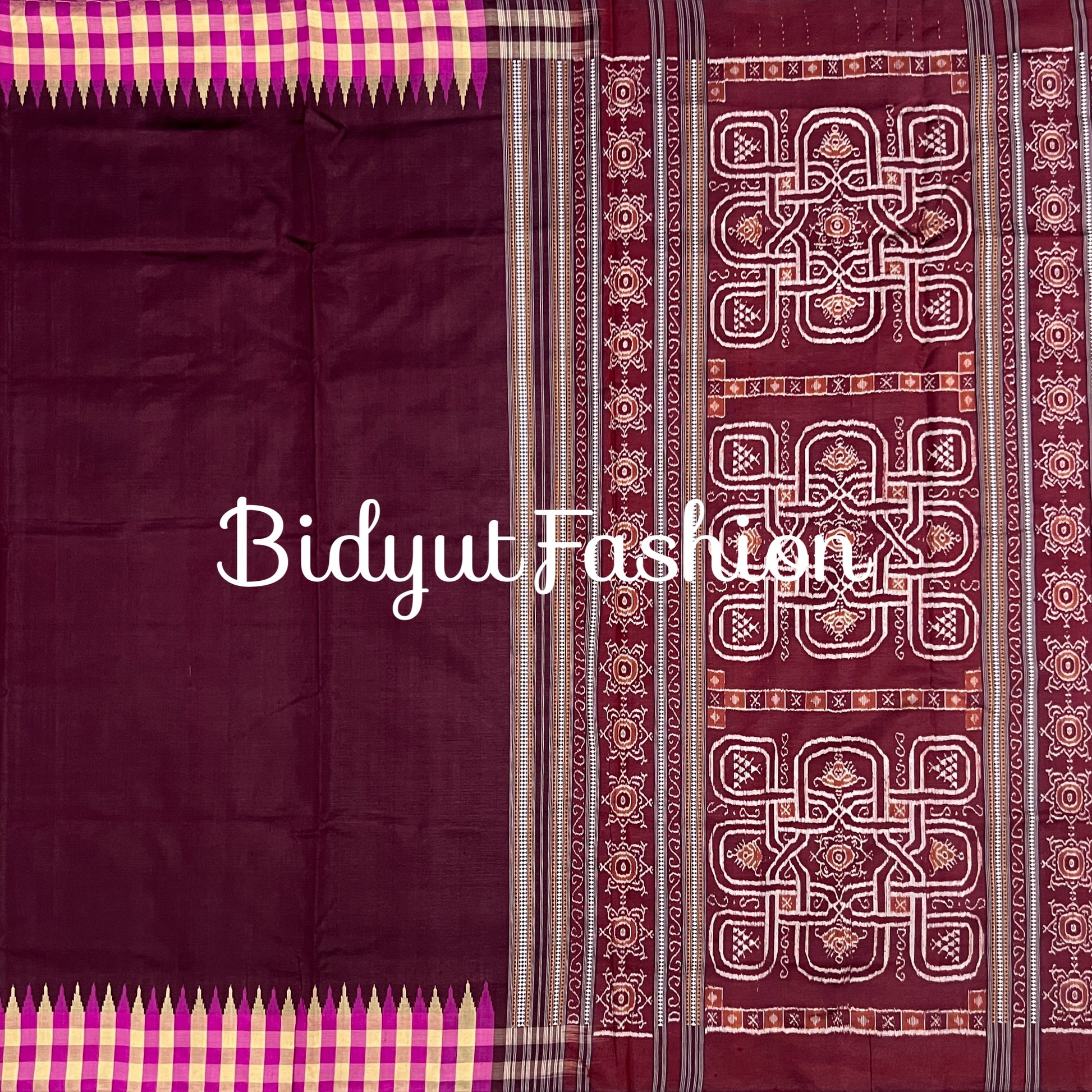 Handlooms of Odisha Sambalpuri Phoda Kumbha Ikat Tussar Silk saree Dark Maroon color