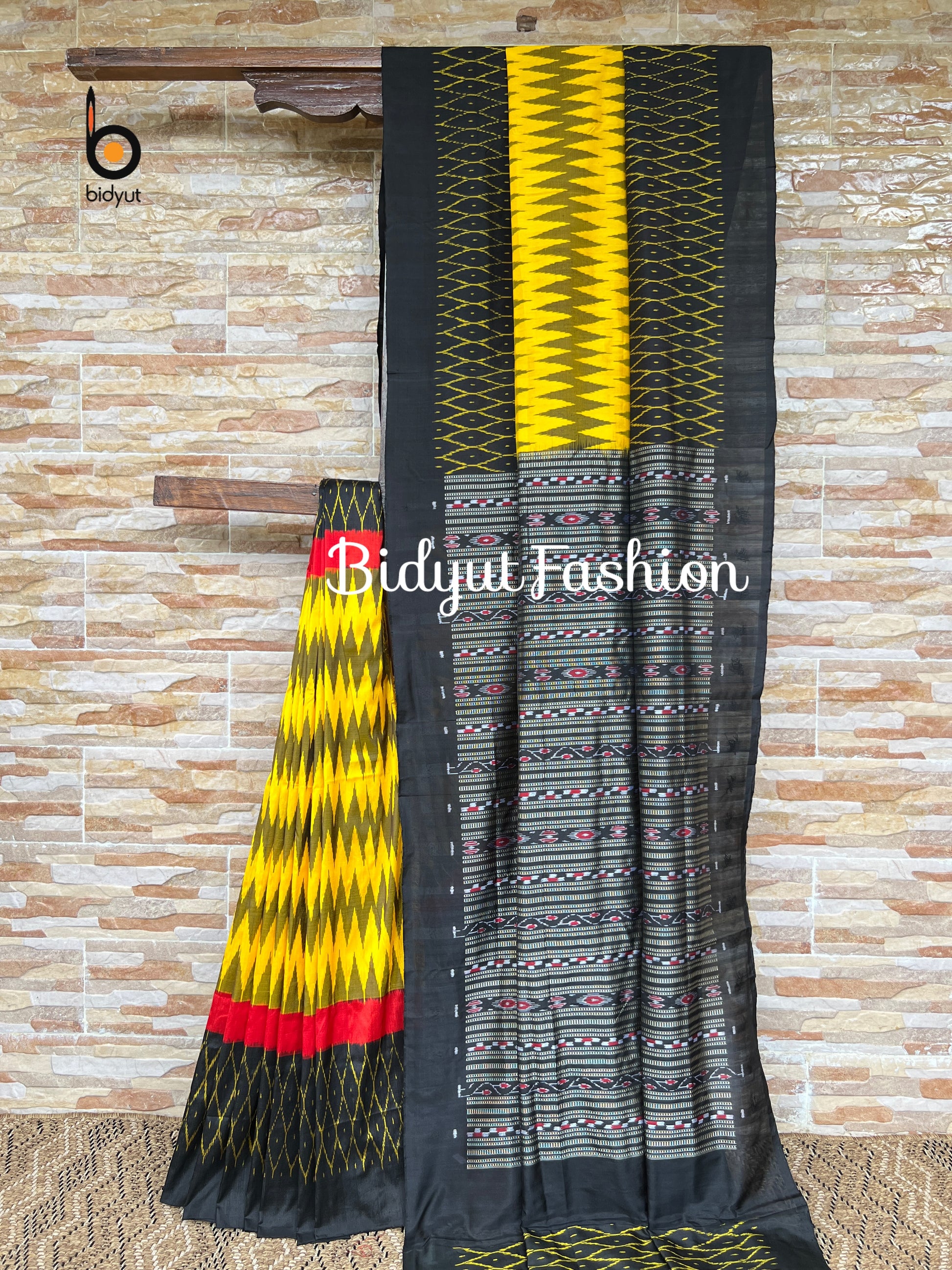 Crafted with utmost care, this saree is made from luxurious silk, offering a smooth and elegant drape. The traditional Sambalpuri Ikat technique is skillfully employed to create the intricate patterns and designs that adorn the body of the saree.