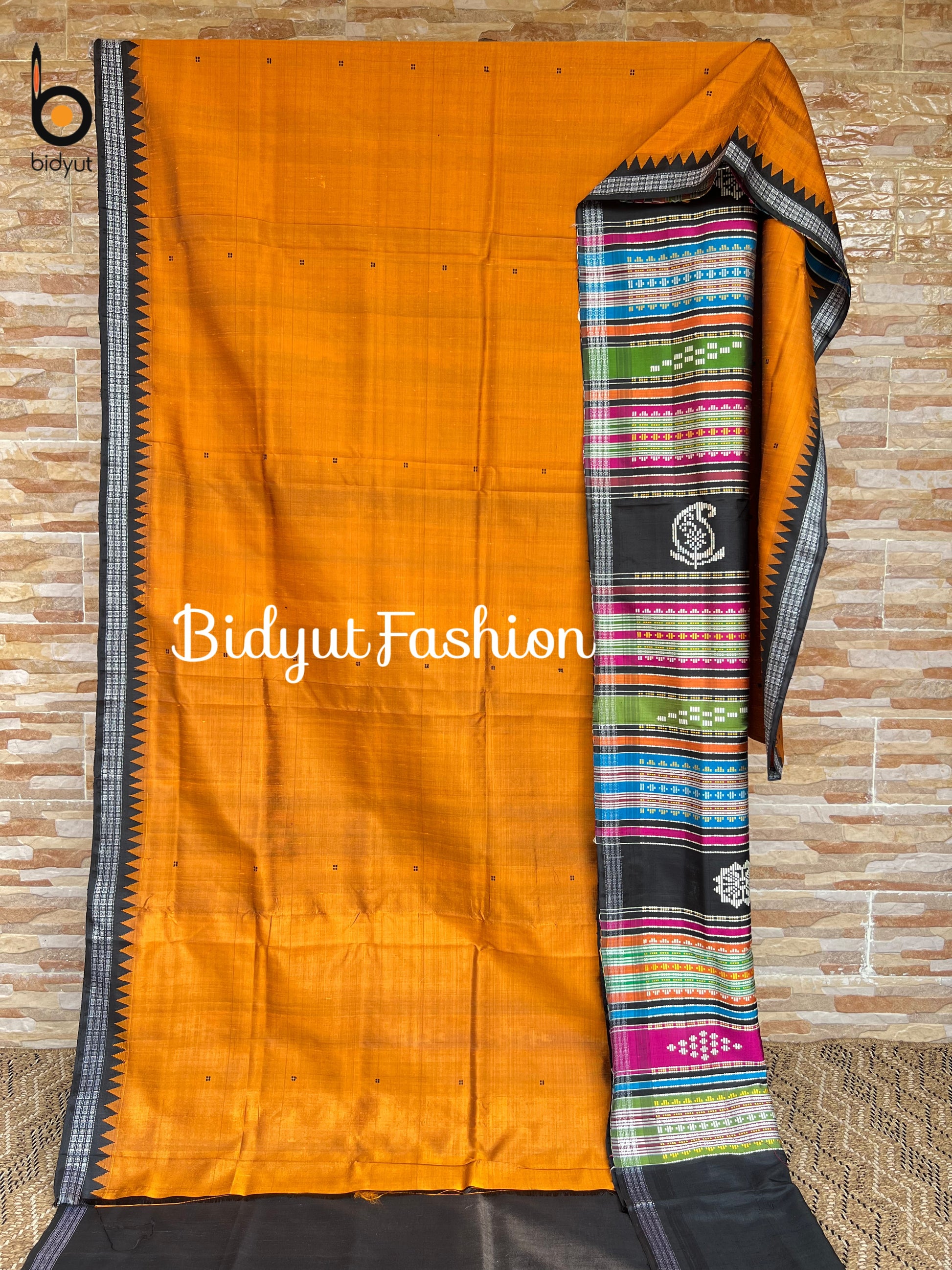 Experience the sheer elegance and timeless beauty of the Berhampuri mustard yellow color double palla Silk Saree, a masterpiece originating from the silk city of Berhampur, also known as "Silk City," in Odisha. Renowned for its exquisite craftsmanship and rich heritage, this saree showcases the intricate Phoda Kumbha weaving technique, making it a true treasure of Odisha handloom.