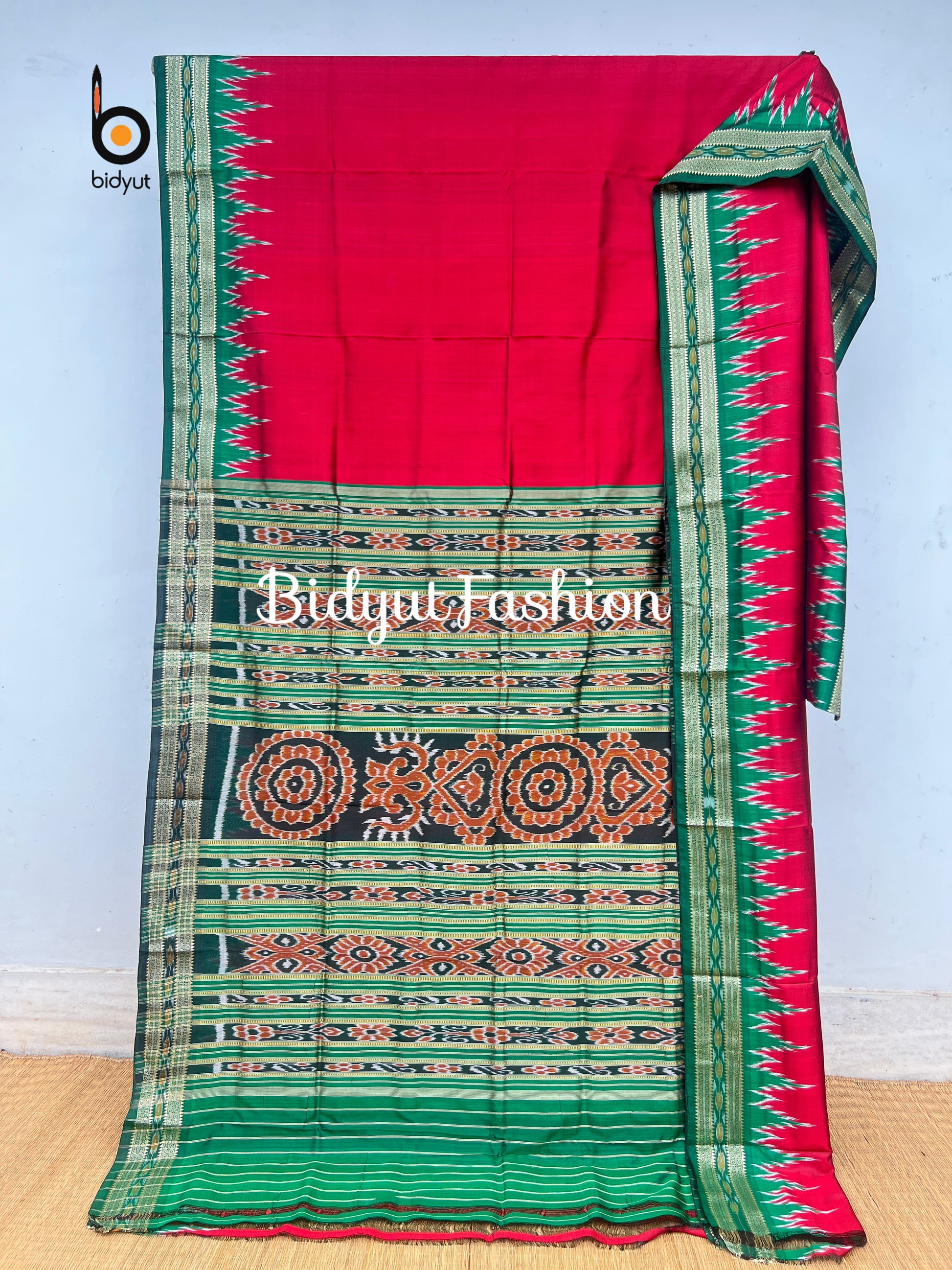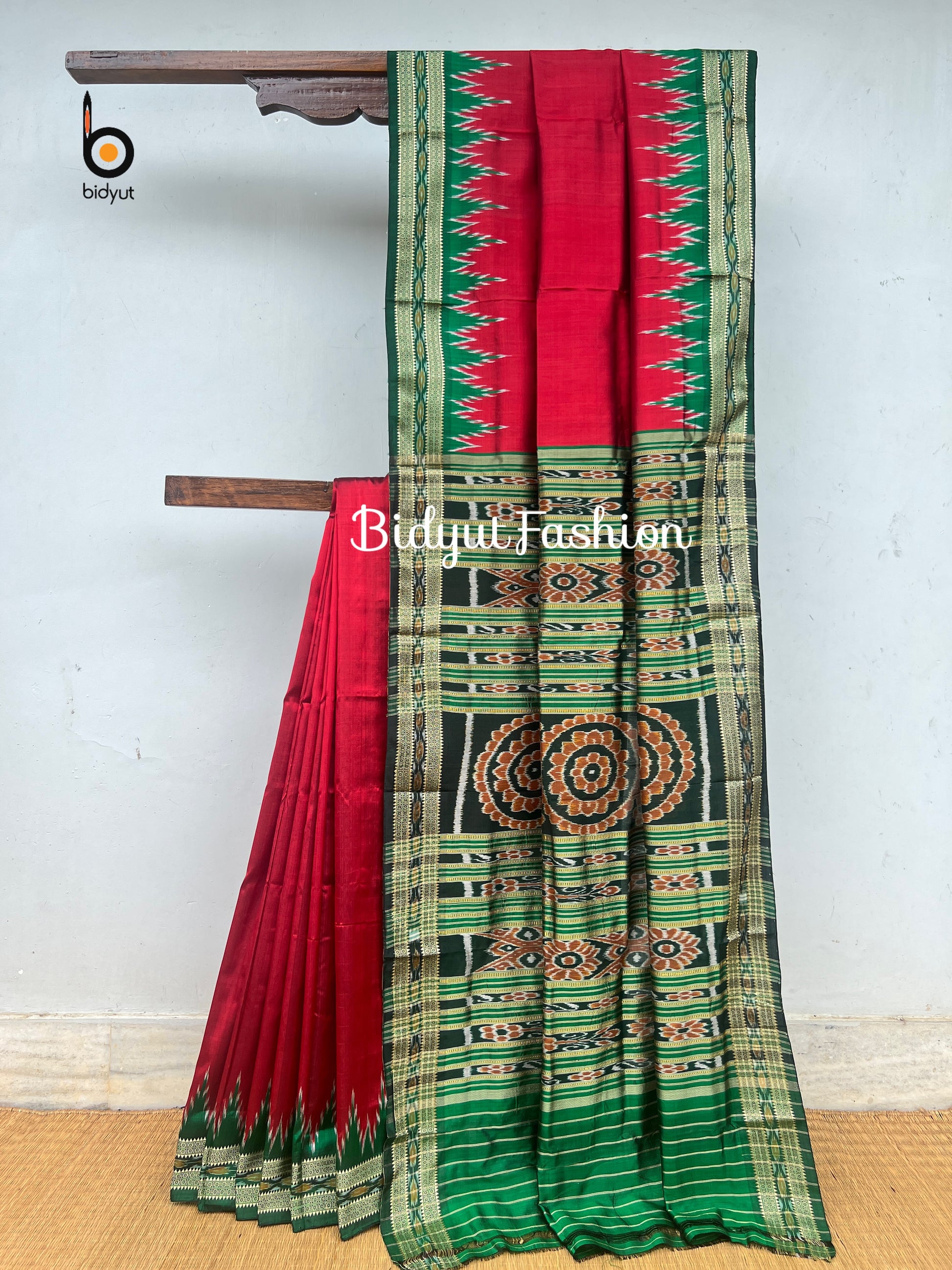 Handlooms of Odisha Nuapatna Khandua Silk Saree Red color