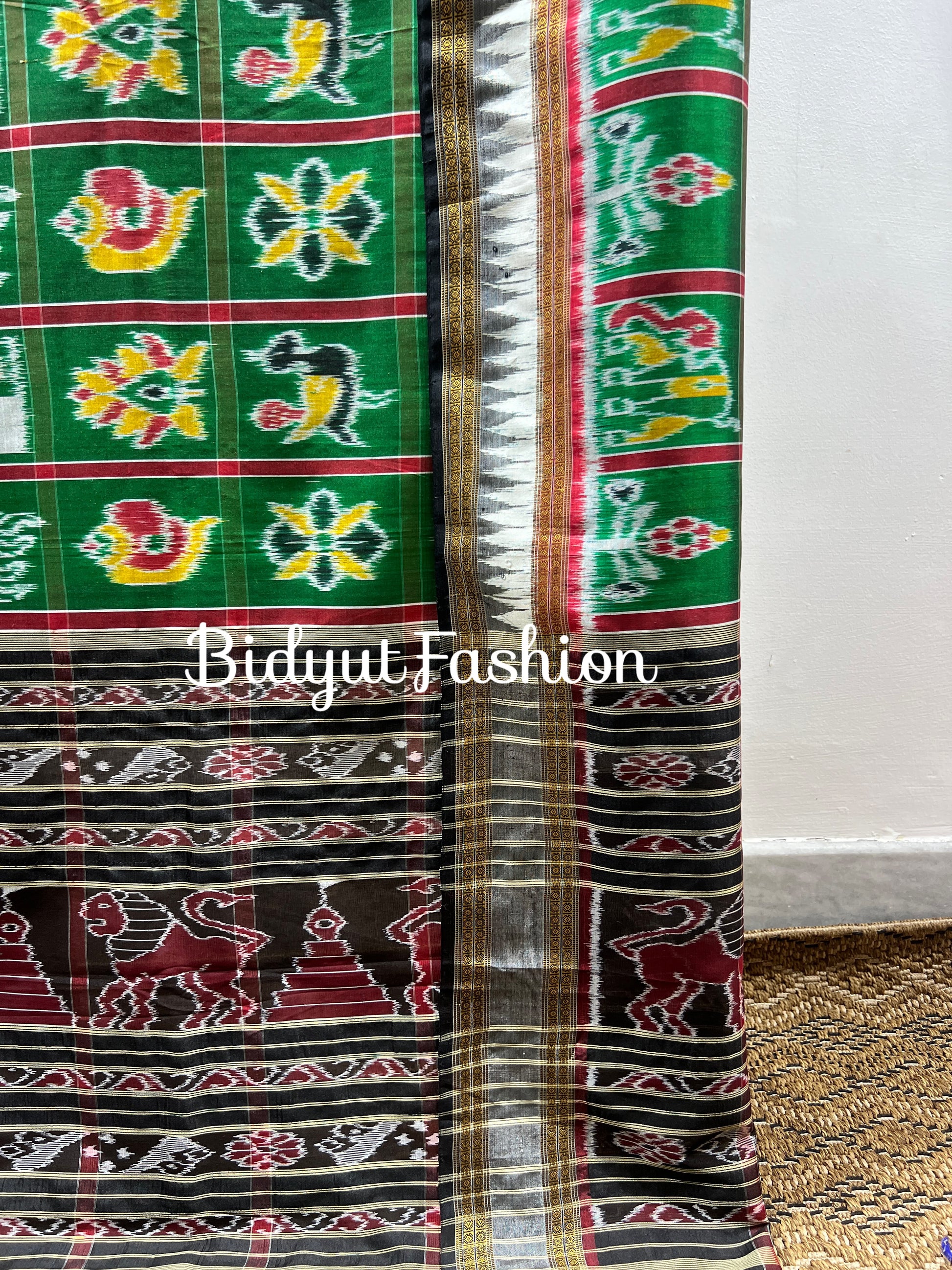 Handlooms of Odisha Nabakothi Ikat Silk Dupatta Green color