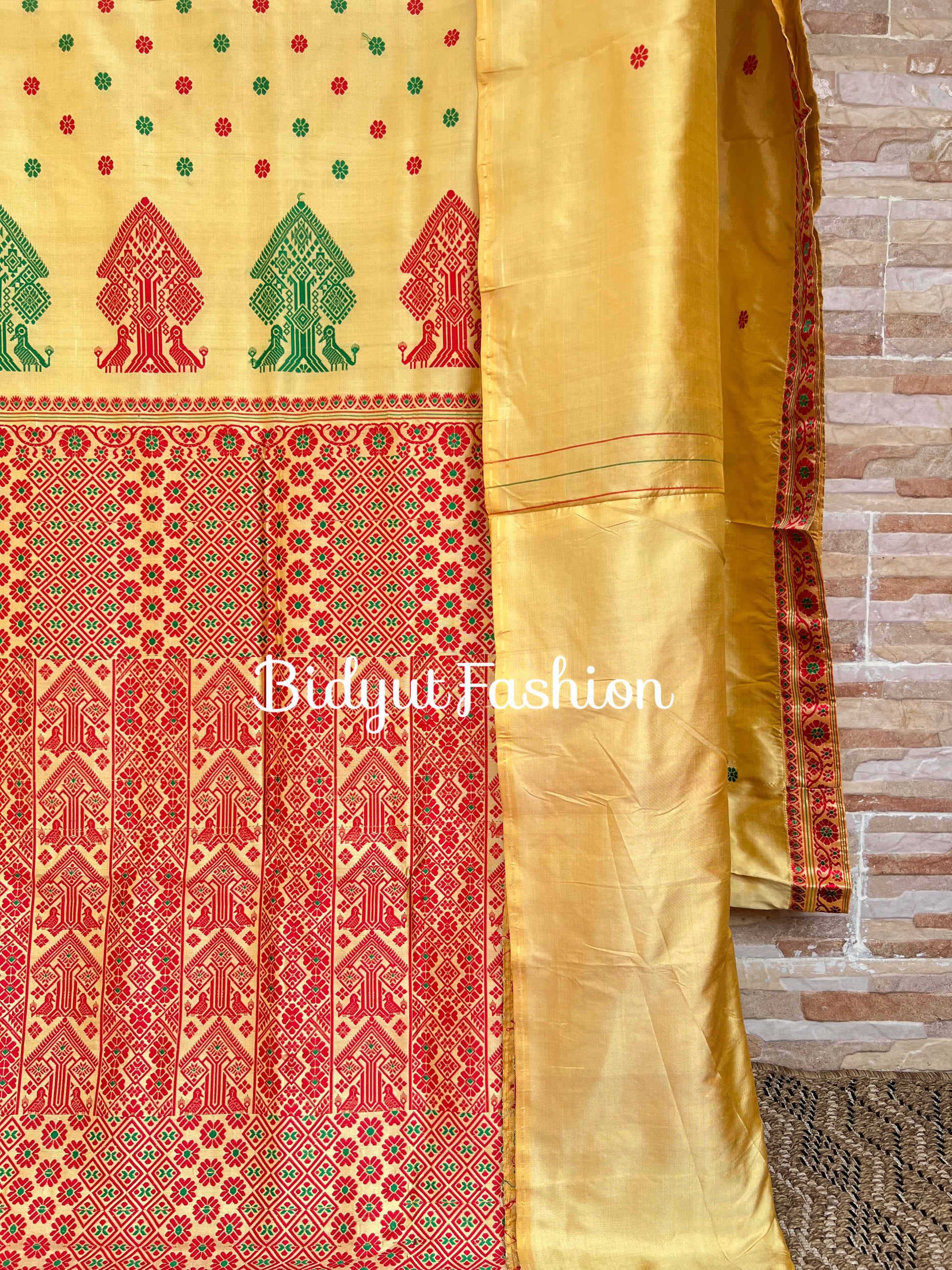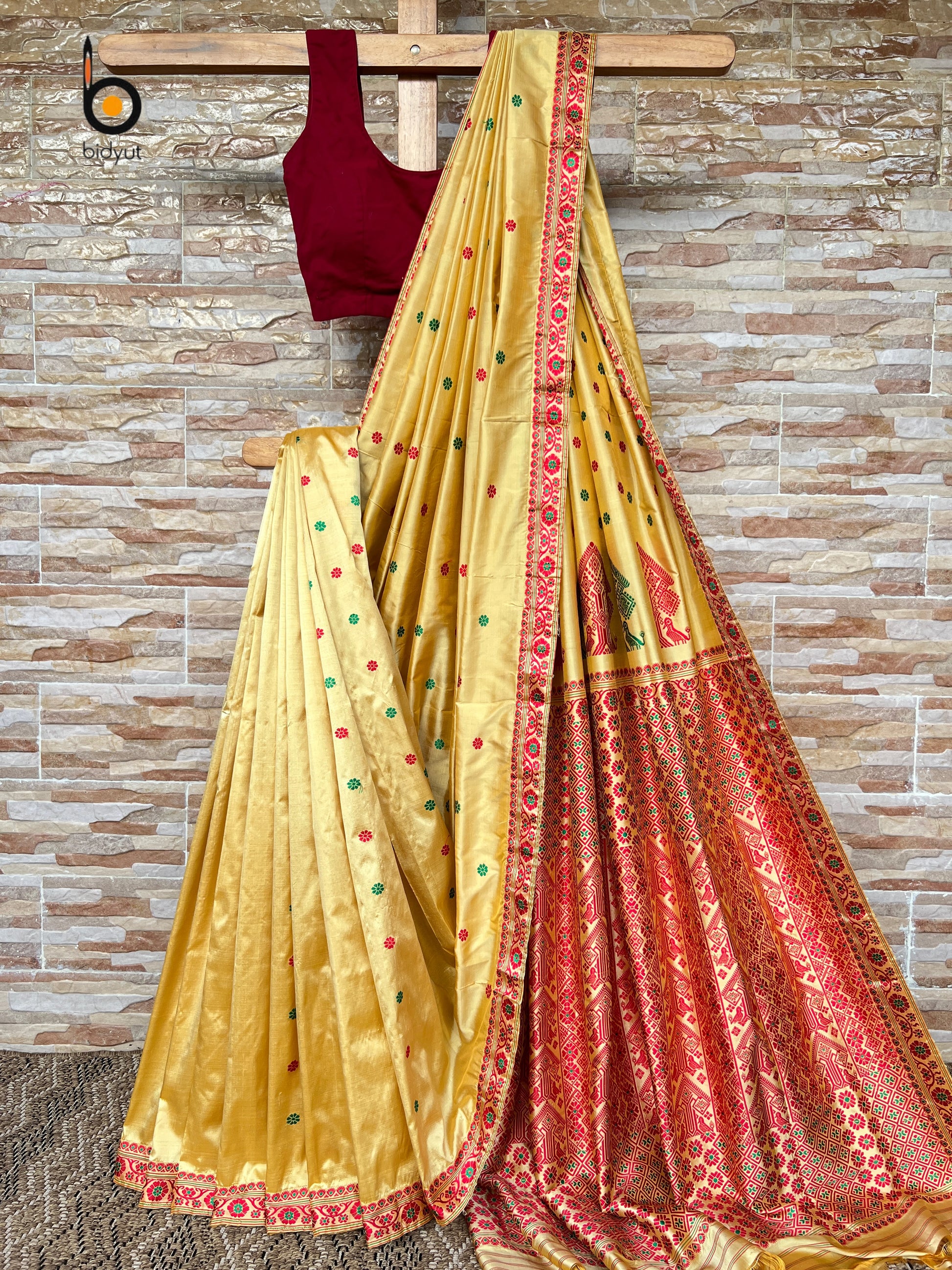 Silk Type: The Assam handloom sarees are primarily crafted using Muga silk, although Eri and Pat silk are also used. Muga silk is highly durable and ideal for both casual and formal occasions, making these sarees a versatile addition to your wardrobe.