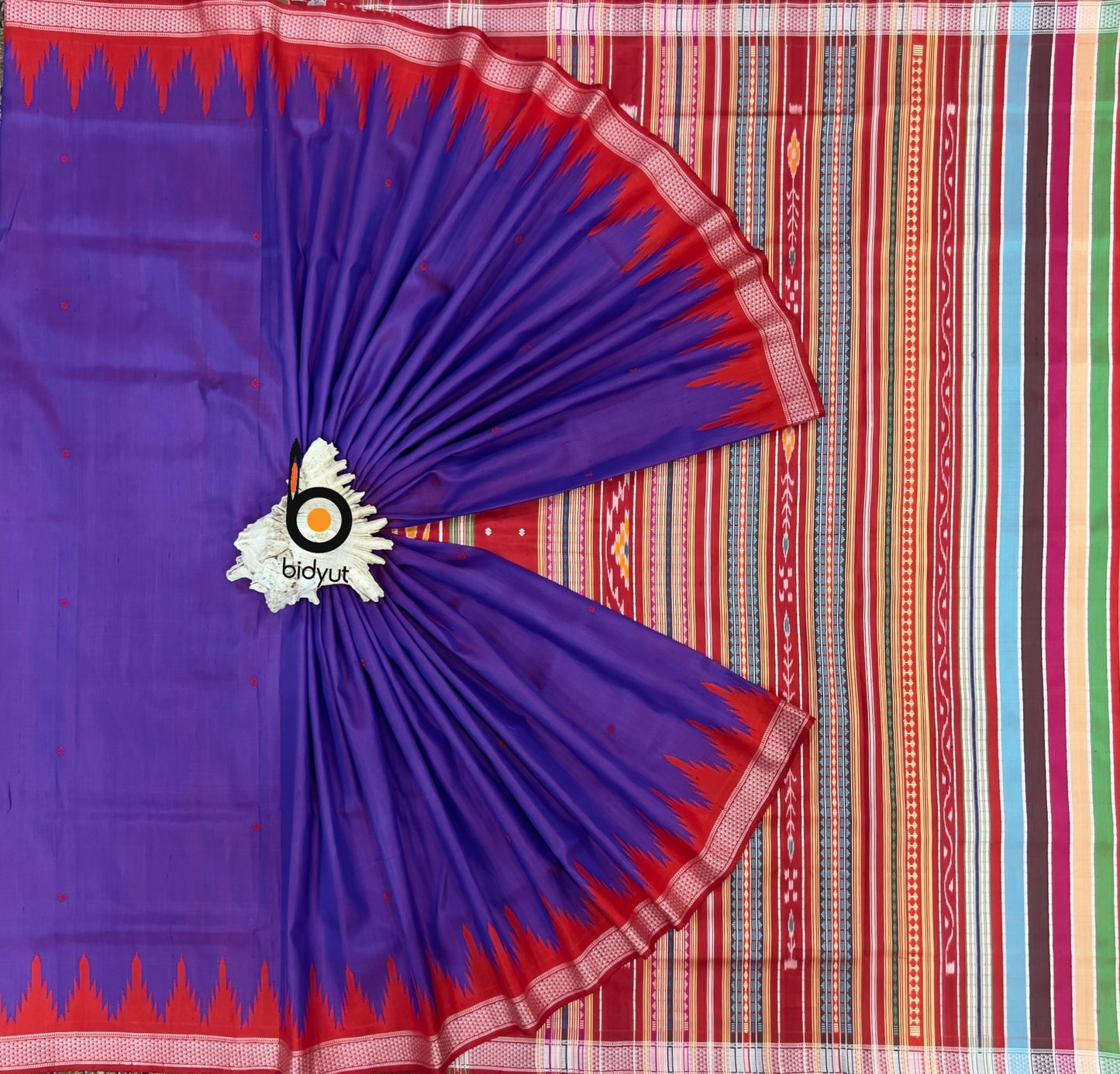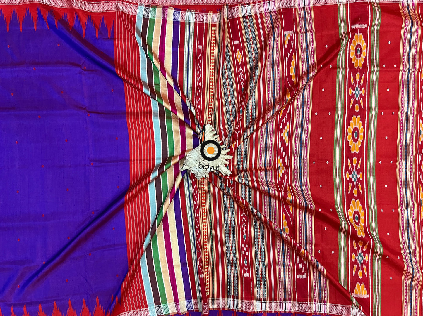 One of the distinguishing features of the Berhampuri Silk Saree is its unique weaving pattern. The Phoda Kumbha technique involves weaving extra weft threads into the fabric, creating intricate motifs and designs. The skilled weavers from Berhampur meticulously interlock each thread, resulting in a stunning interplay of colors and textures.