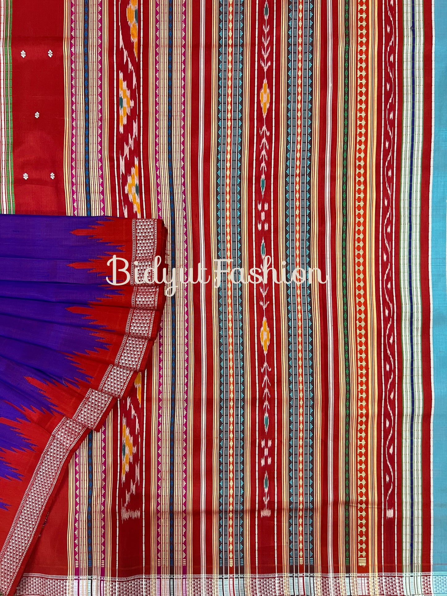 Available in both single palla and multicolor double palla options, the Berhampuri Silk Saree offers versatility and style. The single palla sarees feature a single broad border, while the double palla sarees boast two contrasting-colored borders, adding an extra touch of elegance. The use of Ikat extra weft weaving further enhances the beauty of the saree, creating captivating patterns and designs.