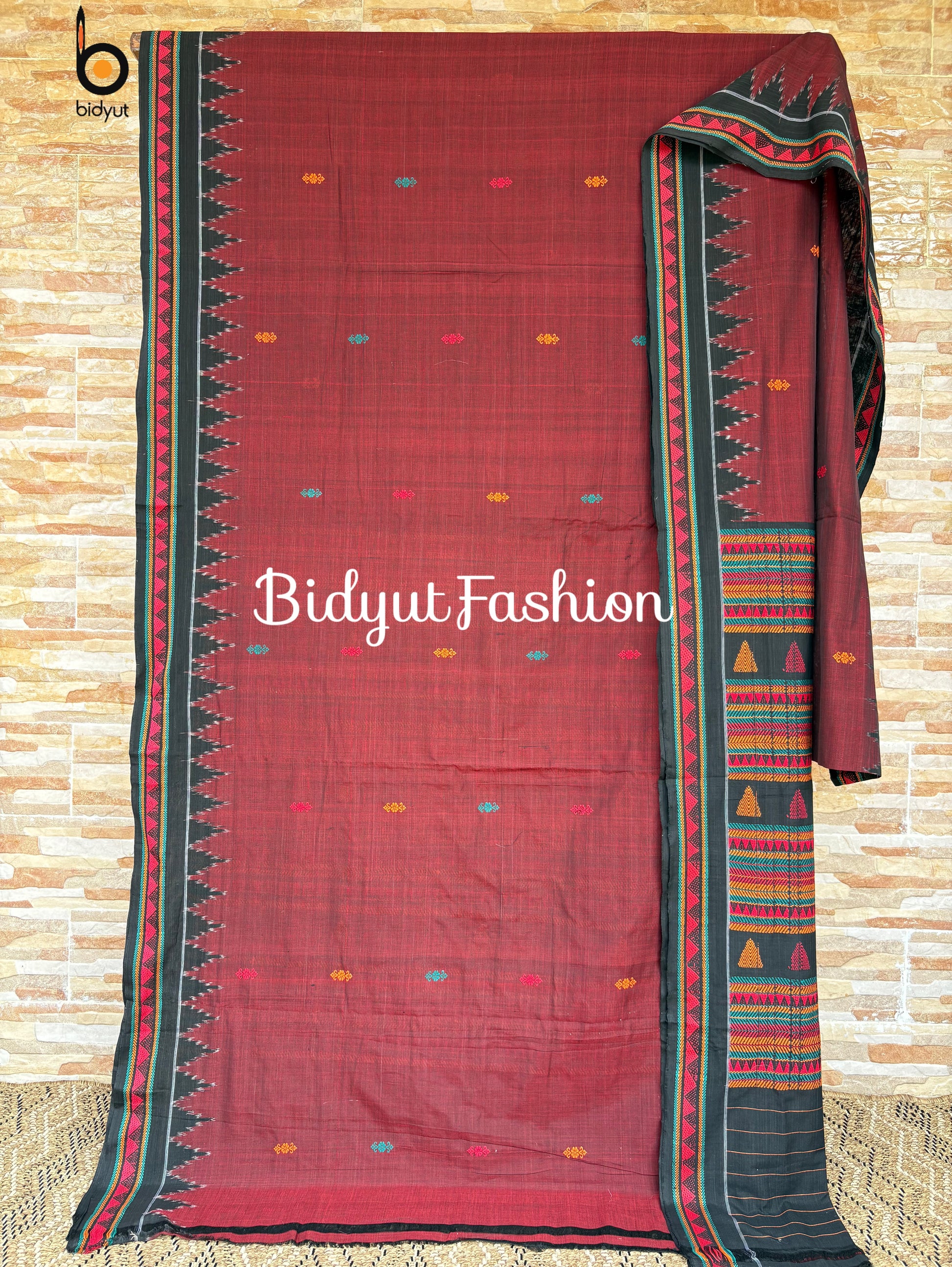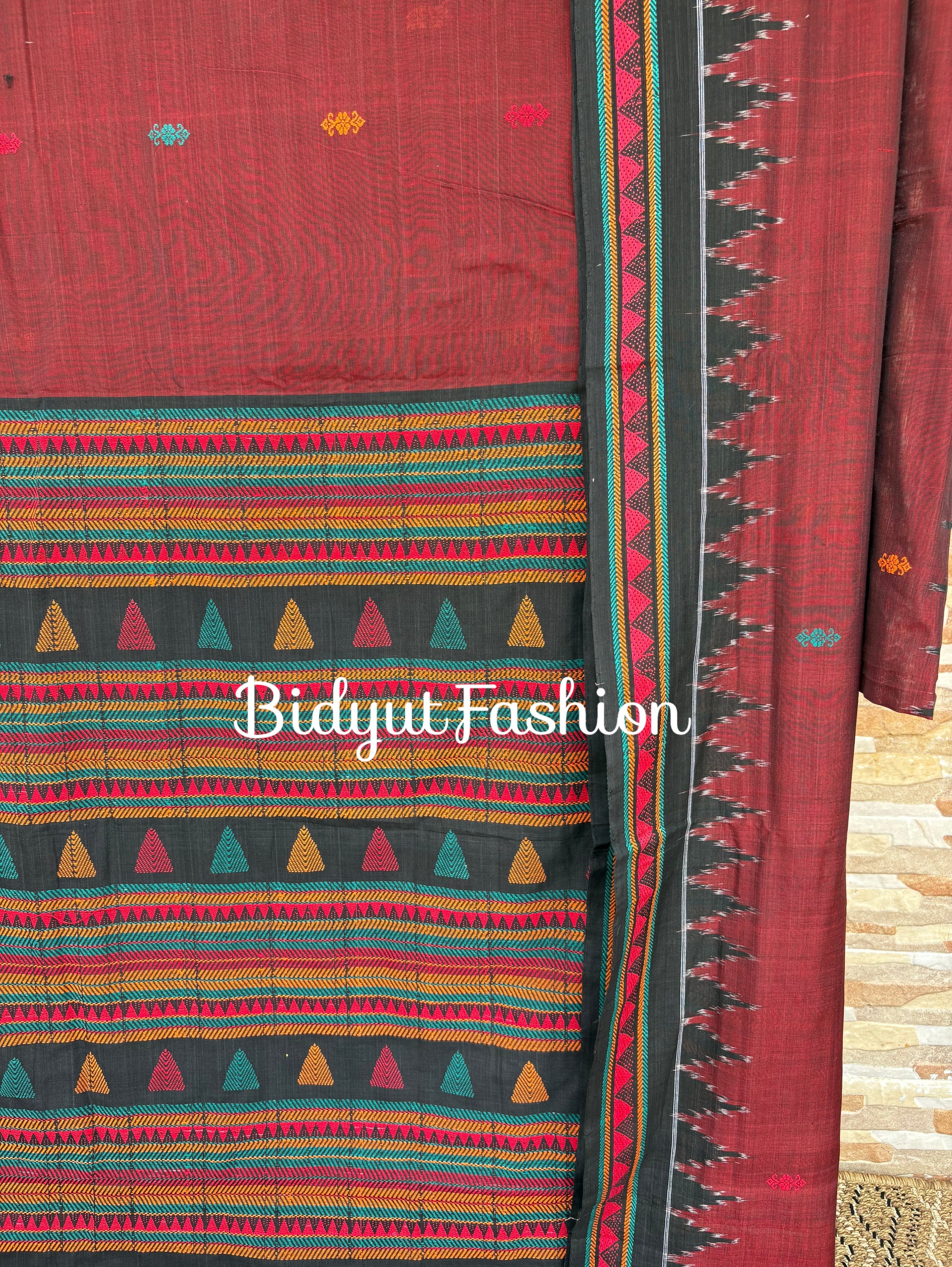 Handlooms of Odisha Dongria Design Cotton Saree - Burgundy color saree