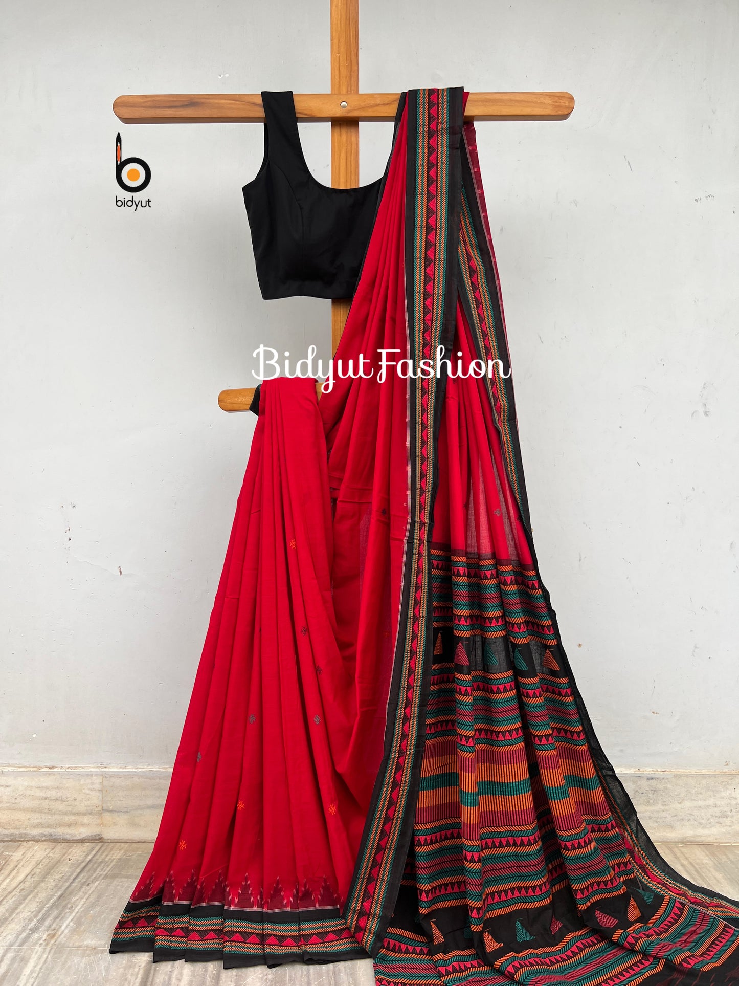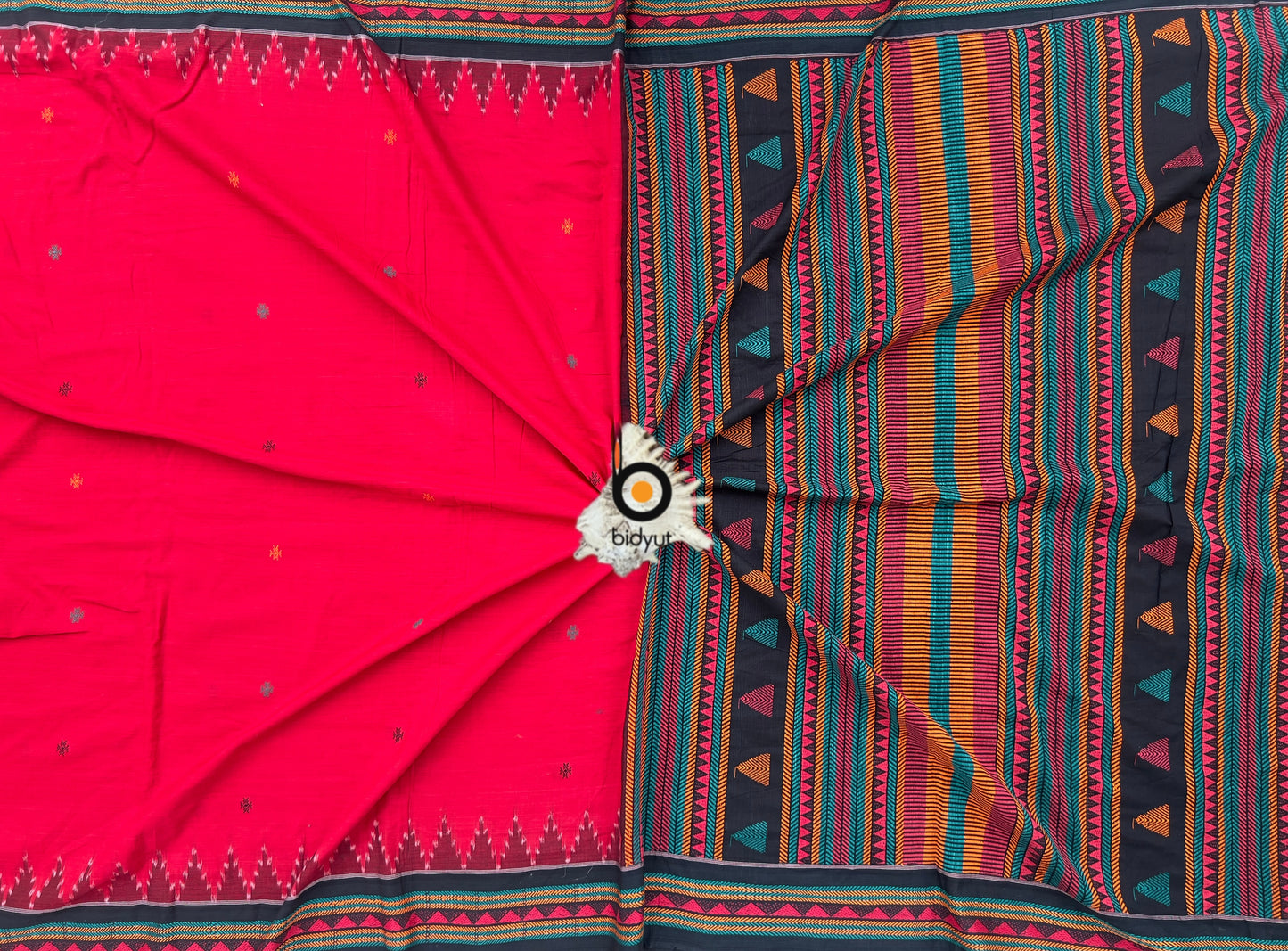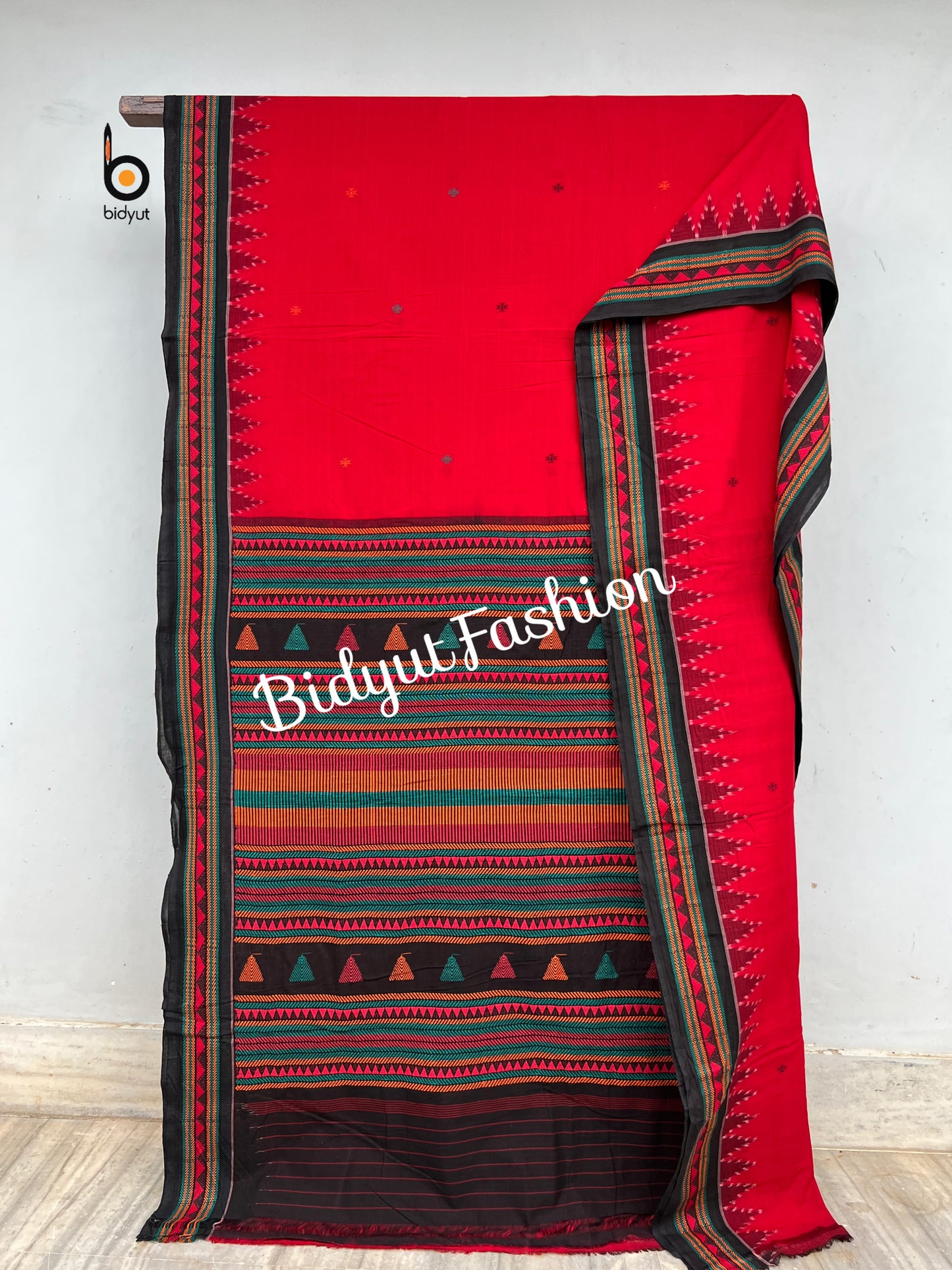 Handlooms of Odisha Dongria Design Cotton Saree - Red color saree