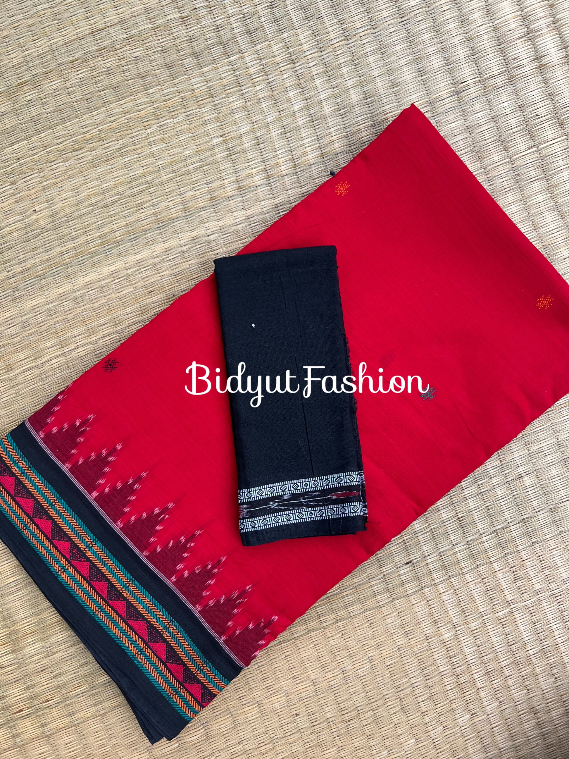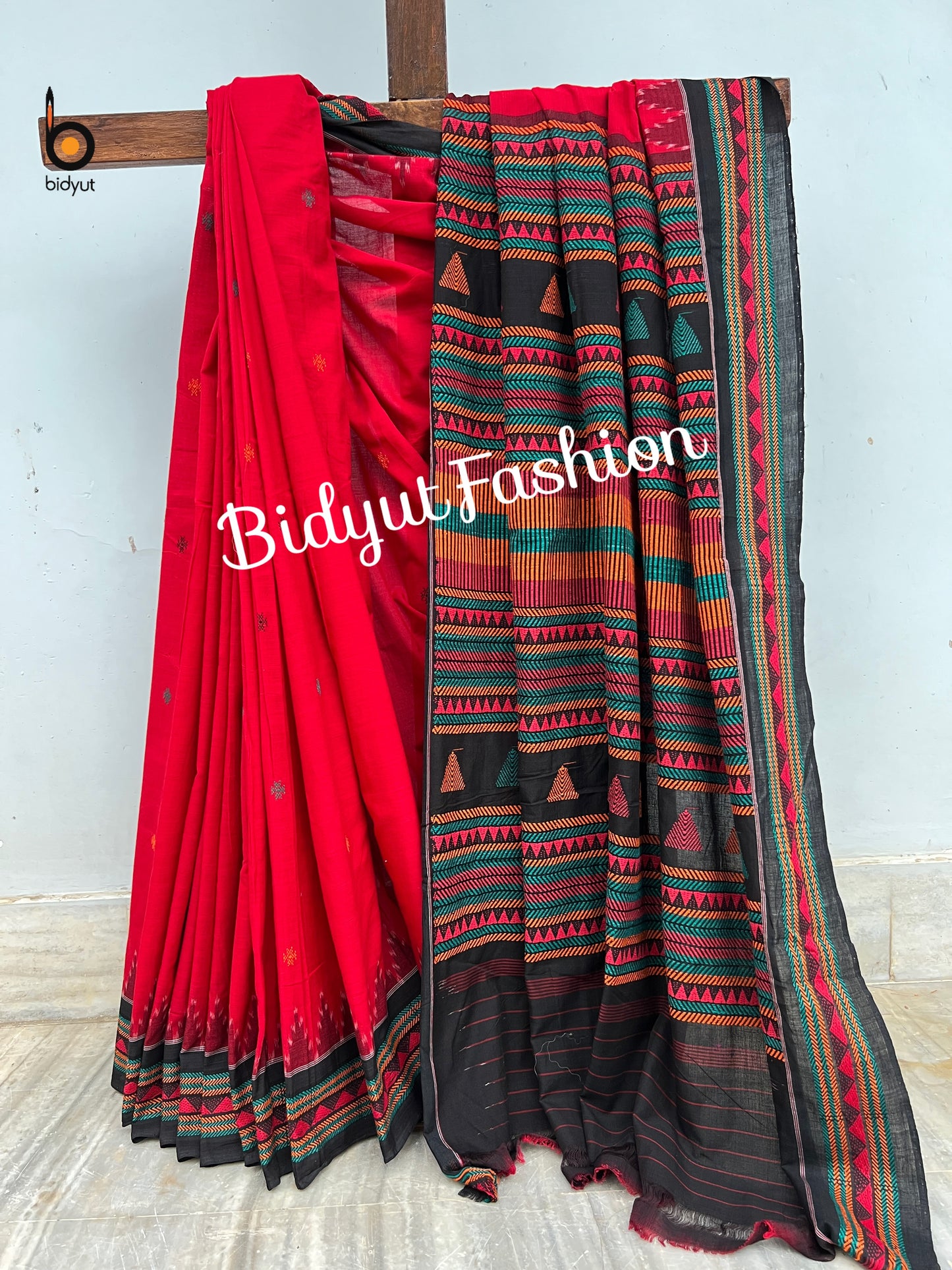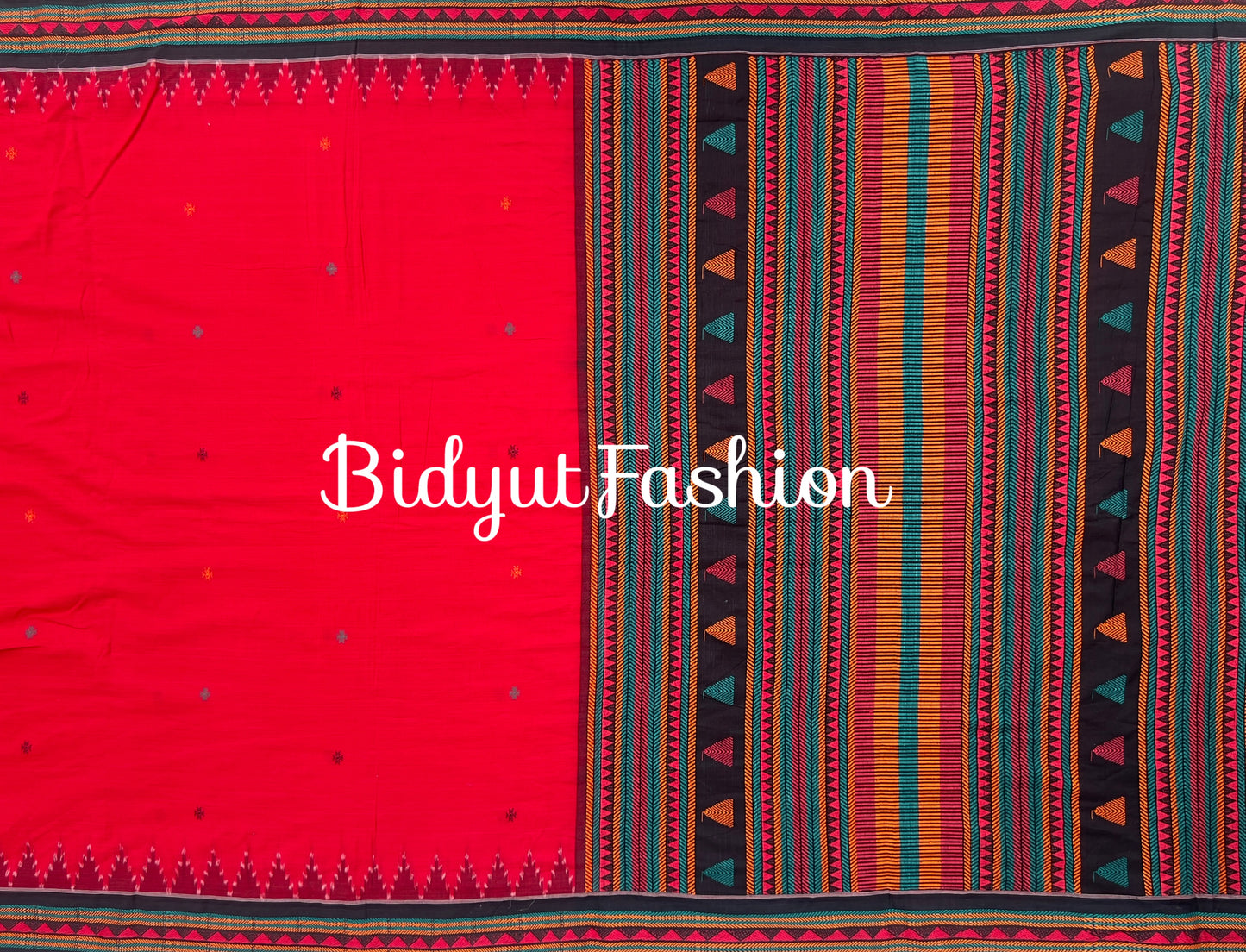 Handlooms of Odisha Dongria Design Cotton Saree - Red color saree