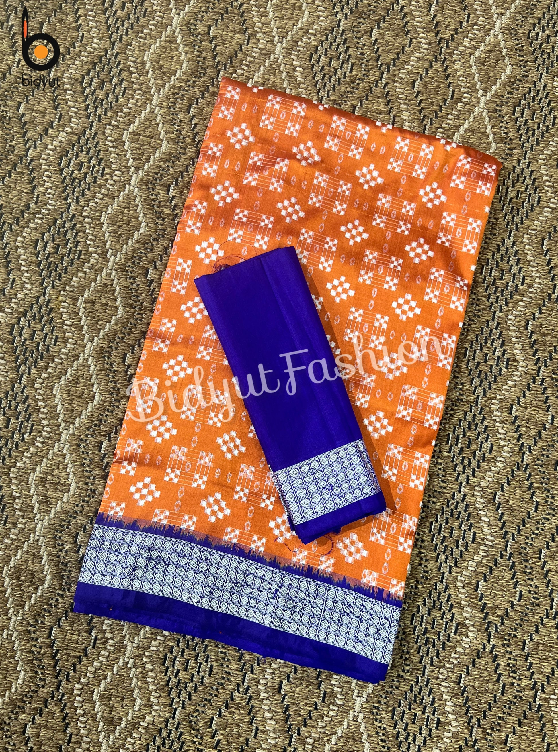 Handlooms of Odisha Sambalpuri double Ikat Passapalli Silk Saree Orange color