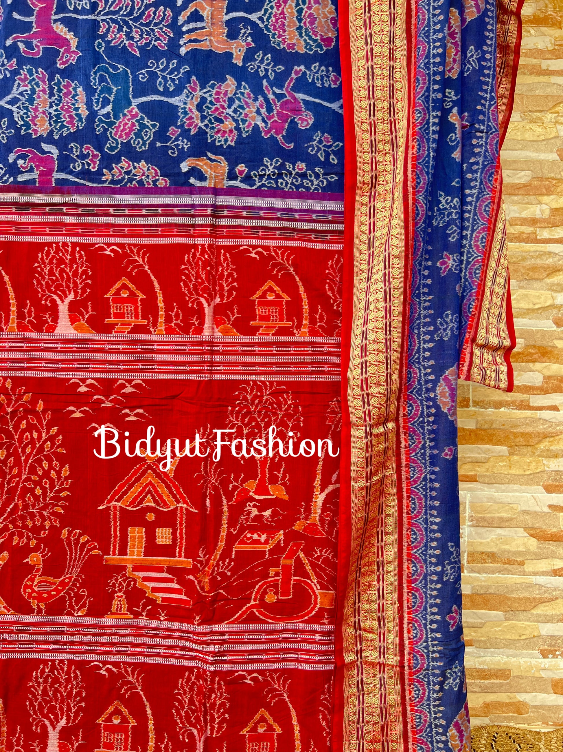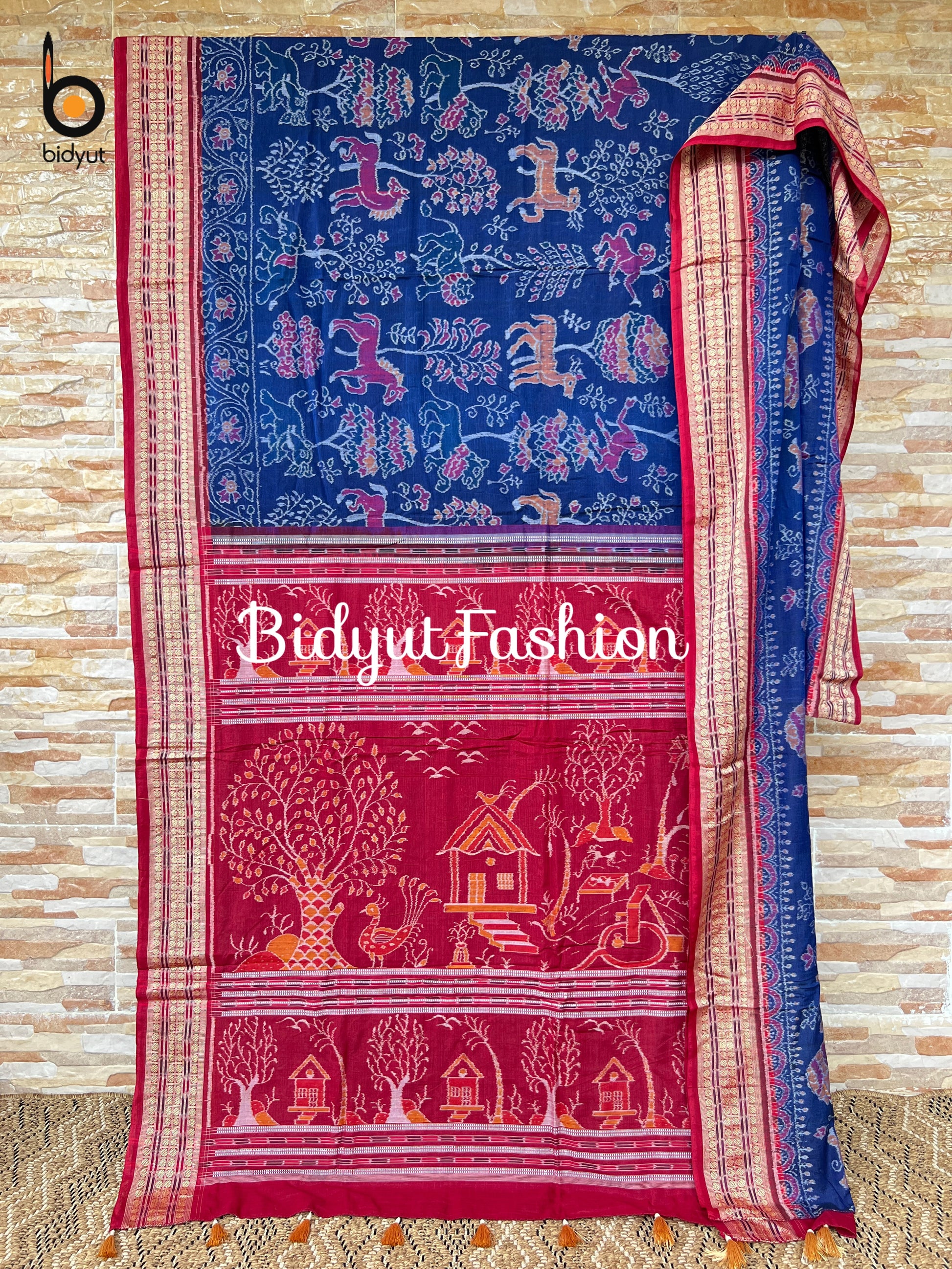 Handlooms of Odisha Sambalpuri Ikat Wild Tapestry Vana Chitta Aranya motif cotton saree Blue color