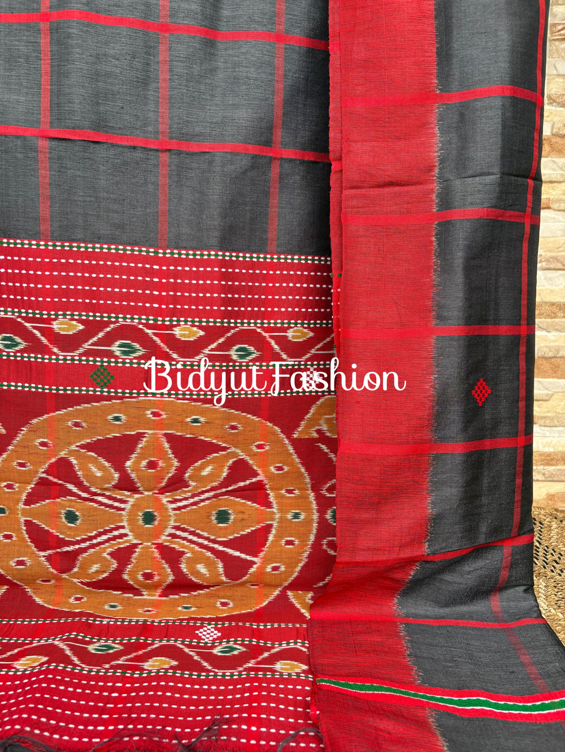 Handlooms of Odisha Santhal Tribal Tussar Silk Sarees Black Color