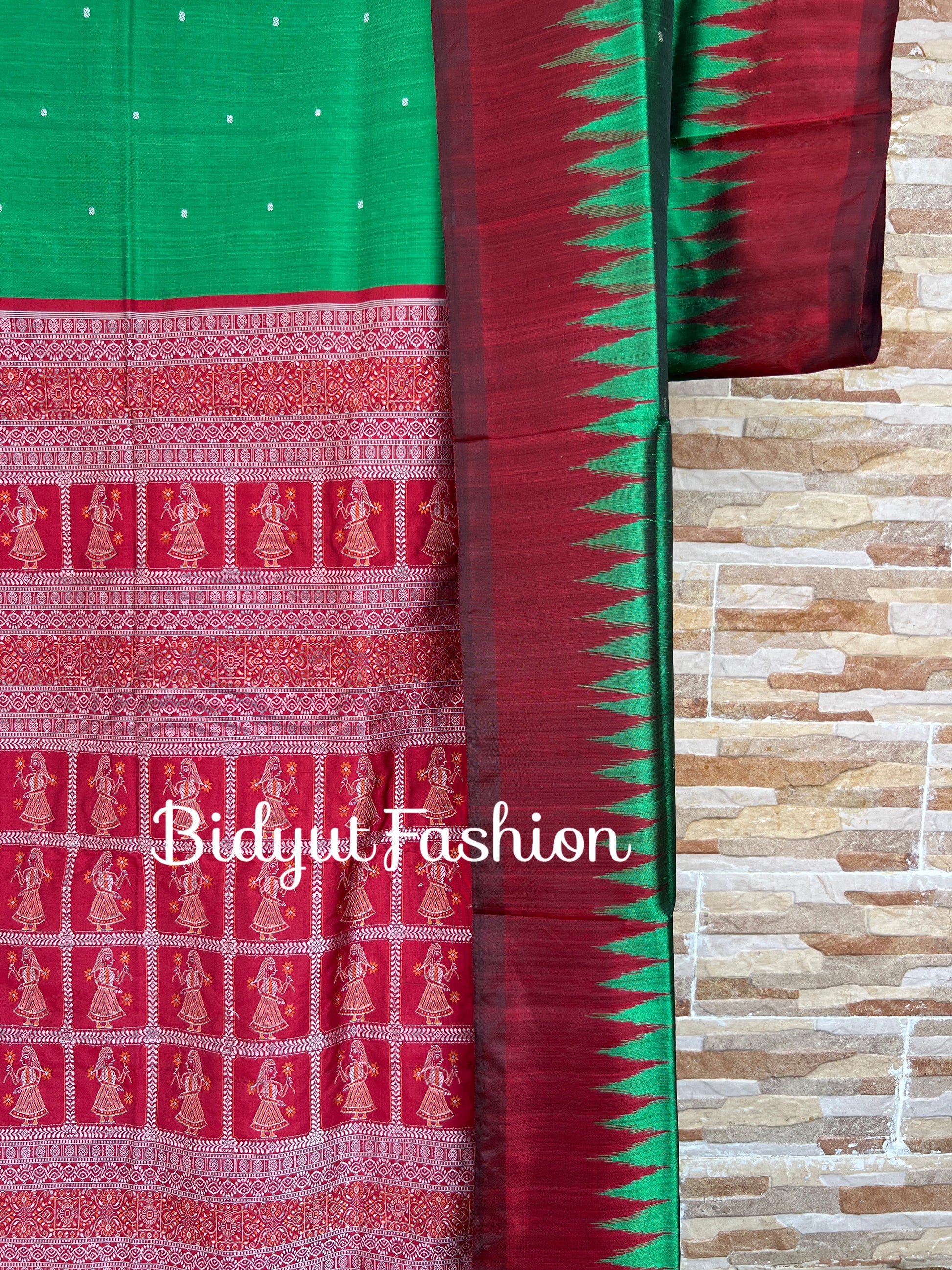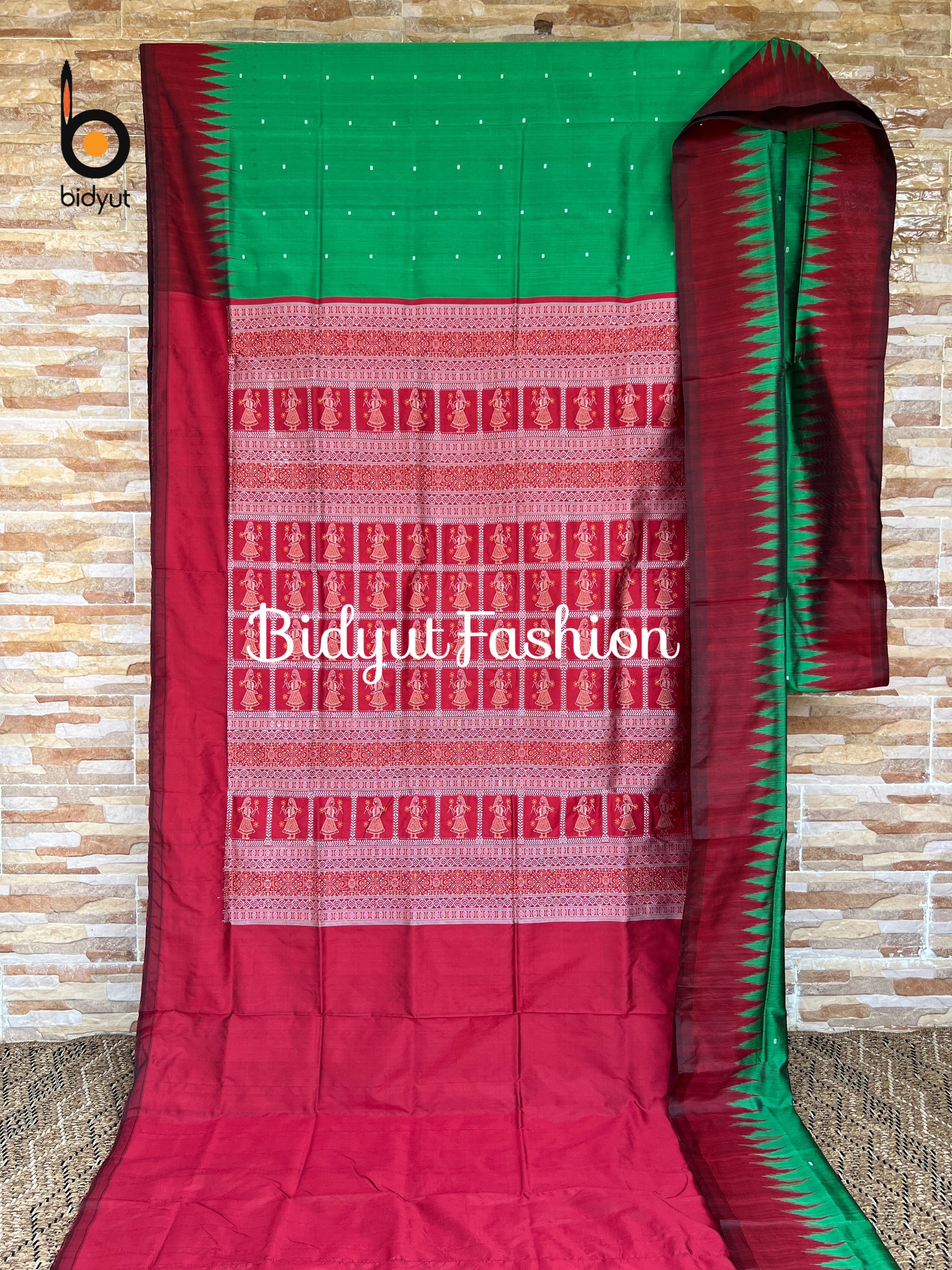 Handlooms of Odisha Bomkai Silk Saree Green color