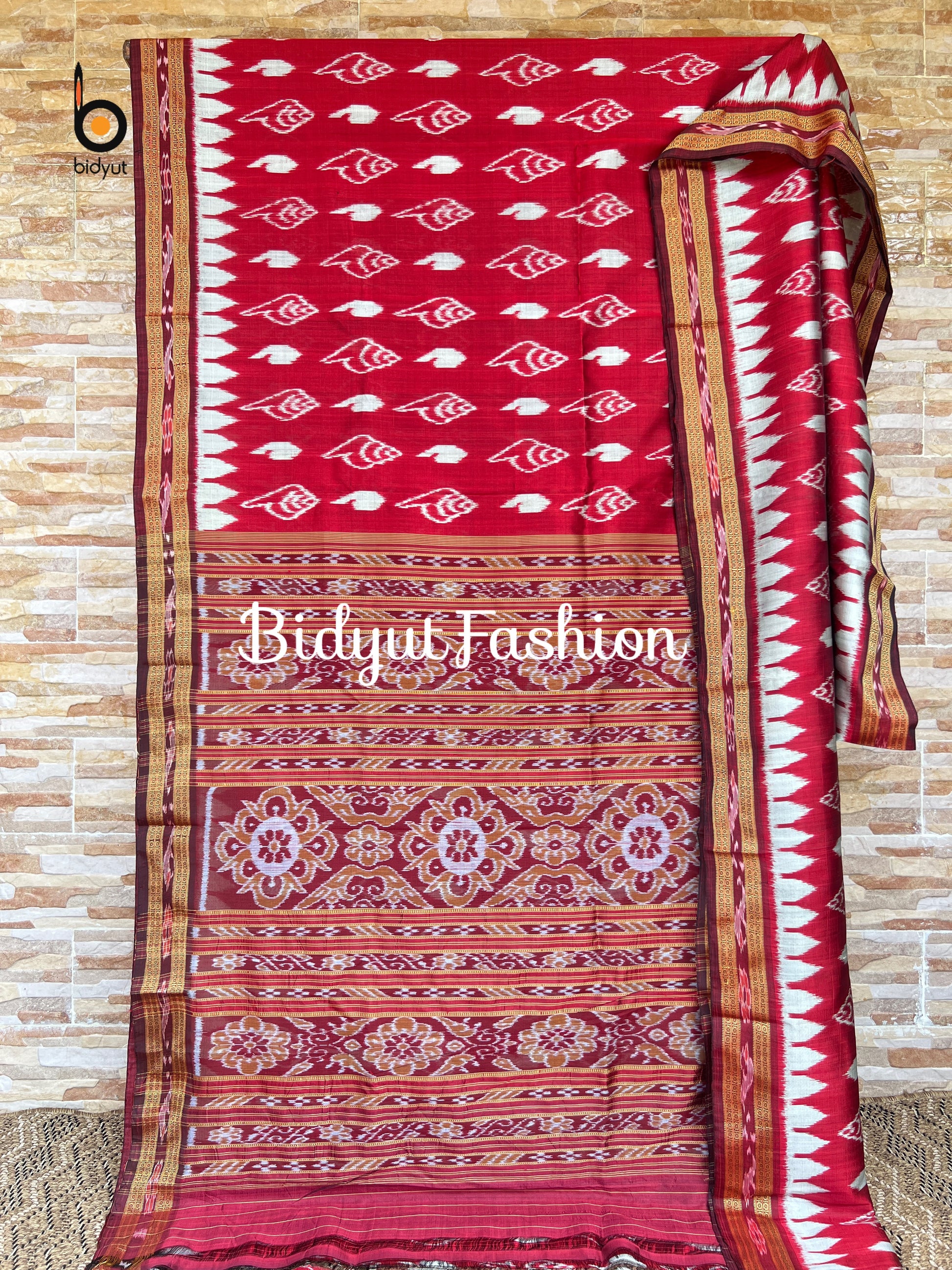 Originating from Cuttack district suburban villages of Odisha, the Nuapatna Ikkat Saree is handwoven using the ikat technique. The saree's threads are resist-dyed before being woven, resulting in a unique and timeless design. These sarees are still handwoven today by skilled artisans, preserving this traditional art form for generations.